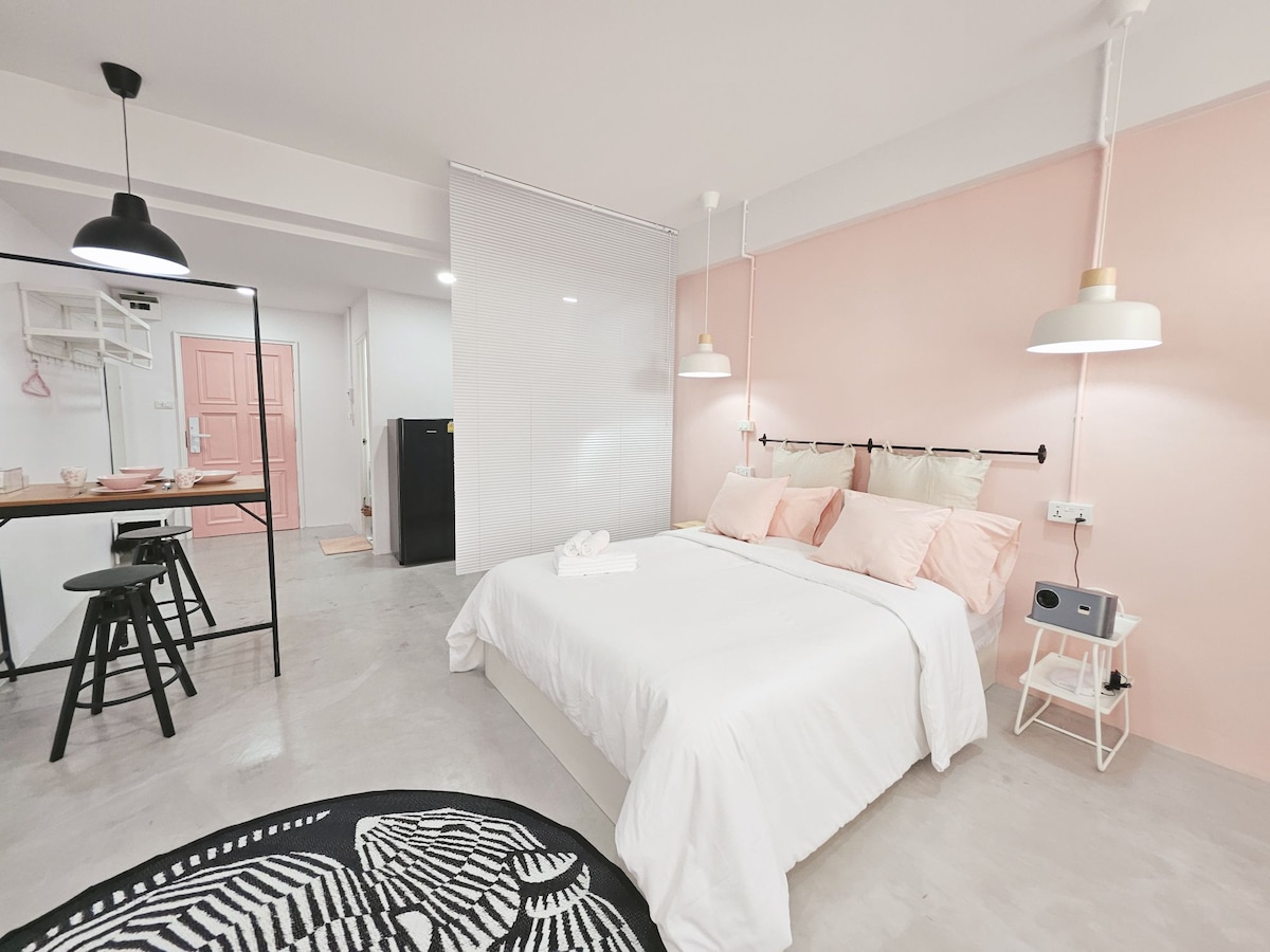 Luxusszerűen berendezett, tágas lakóegység, 1 hálószobával, 1 nappalival és 1 fürdőszobával, ahol legfeljebb 2 vendég kényelmesen megszállhat. 1 perc séta az MRT-ig. A higiénia és a biztonság a legfontosabb prioritásunk. Az ingázáshoz kétségtelenül nagyon egyszerű, mivel az MRT-nél található, és közel van a városközponthoz. Könnyen kaphatsz taxit is (ha nem szereted a Grabot). Étkezéshez kényelmesen eljuthatsz a Seven Eleven földszintre, és számos étterem található az utcákon. A helyi éjszakai piac közvetlenül a lakással szemben található.