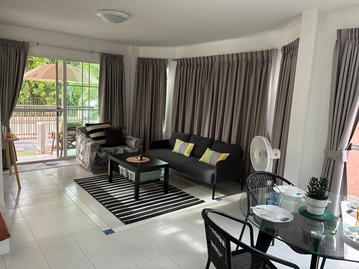 Egy biztonságos és barátságos luxusfaluban található, 4 fürdőszobás hálószobával rendelkezik, amelyek közül az egyik a földszinten található – ideális kisgyermekes családok, idősebb vendégek vagy 6–10 fős csoportok számára. Élvezd a világos, tágas nappali és étkező részeket, valamint a teljesen felszerelt konyhát, amely minden főzési igényt kielégít. Az otthon kényelmes hozzáférést biztosít a bevásárlóközpontokhoz, a helyi piacokhoz, a kórházakhoz, a Skytrainhez és a főbb közlekedési csomópontokhoz. *Az elektromos áram és a víz benne van a bérleti díjban.*