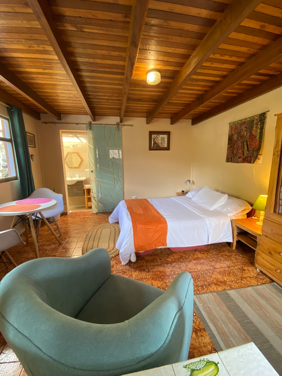 Ez az önálló lakosztály egyedi hely - az 5 csillagos kényelmet a queen méretű ággyal, a dizájner bútorokkal és a modern készülékekkel ötvözi egy hatalmas zöld terasszal, ahol a természet szívében pihenhetsz. A kertben saját magad szedheted le az organikus gyümölcsöket és zöldségeket (beleértve a kávét is :-). Ideális pároknak, esetleg 1 gyermekkel (van babaágy csecsemőknek). A vízesésekhez 5 perc alatt sétálsz, a központhoz pedig autóval 10 perc alatt. A lakosztály mellett parkolhatsz, elektromos autós csatlakozóval