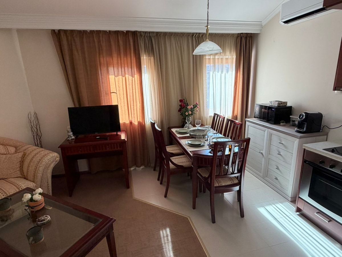 Élvezd a forró élményt ezen a tökéletes helyen – 150 méterre a gondola indulási állomásától. Ingyenes parkolást biztosítunk. A közelben található egy 24 órás szupermarket, gyógyszertár, számos étterem és diszkó. A hely csendes és kényelmes a pihenéshez. A teraszról egyedi kilátás nyílik három hegyre. Van egy teljesen felszerelt konyha, két kávéfőző, egy nagy hűtőszekrény, légkondicionáló, mosógép és egy irodai székkel felszerelt munkahely. Reggeli – 7,5 euró/fő. A medence/szauna használata felár ellenében lehetséges