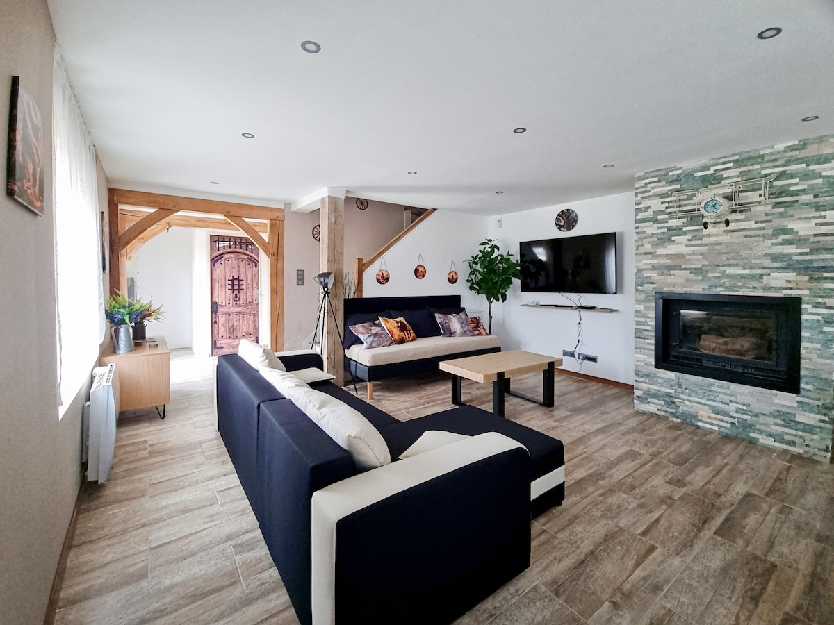 A Forêts Nemzeti Parkban, egy vízparti falu szívében található ez a felújított régi tanya, amely ötvözi az autentikus hangulatot a kényelemmel a felejthetetlen élményekért. Itt egy nagy asztal, kandalló vagy szauna körül találod majd magad. Meleg szobáival, tágas lakótereivel házunk ideális hely a találkozókhoz. Élvezd a békés környezetet, a természet által ihletett, letisztult dekorációt és a szükséges felszereléseket.
