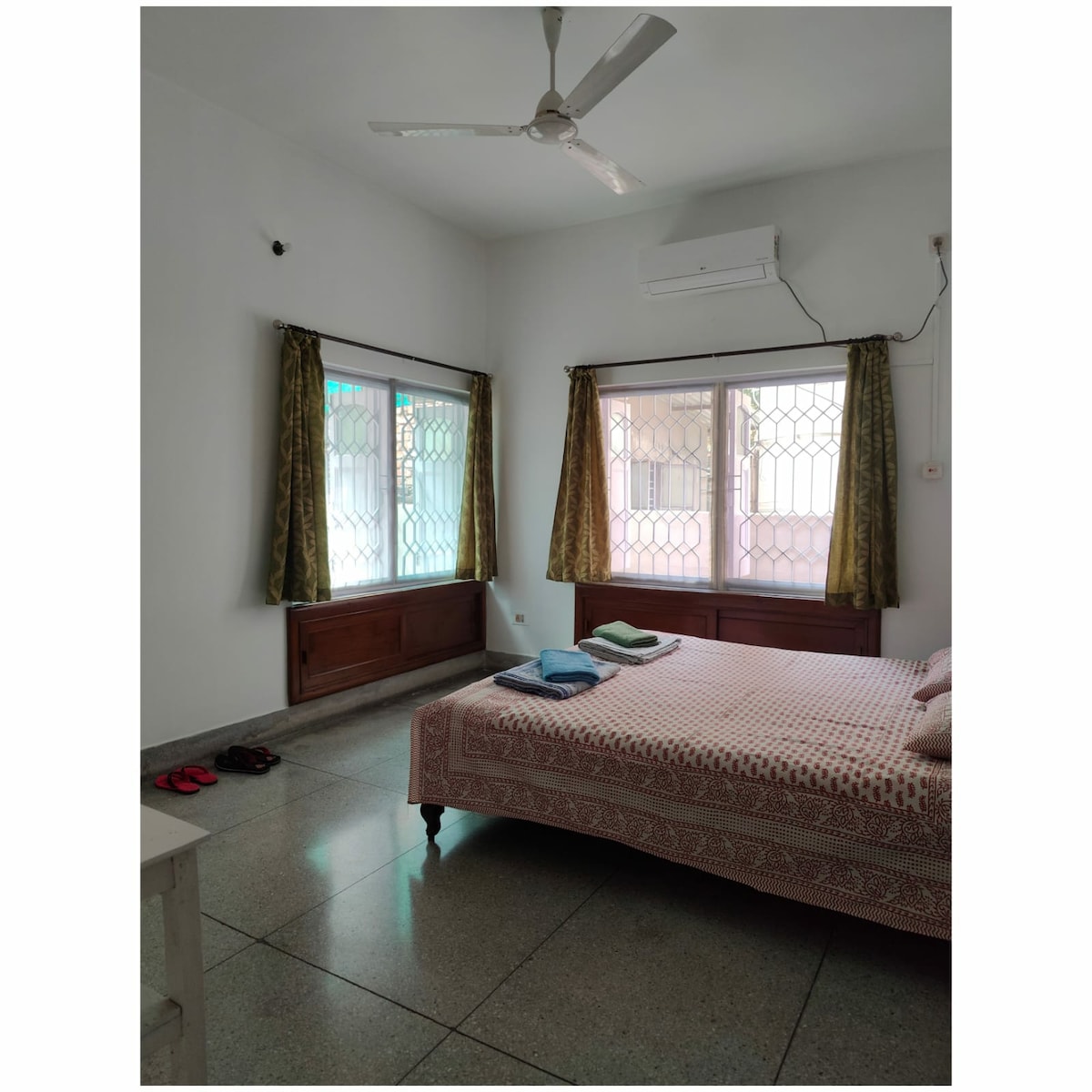Megjegyzés - A nem házas párok nem engedélyezettek. Felejtsd el az aggodalmaidat ebben a tágas és nyugodt villában. Ezen a helyen bepillantást nyerhetsz Bengálba. Nappali 6 személyes kanapéval,középső asztallal,Bluetooth zenelejátszóval és mosdókagylóval. Nagy konyha gázsütővel,mikrohullámú sütővel,kenyérpirítóval,evőeszközökkel, kukta,hűtőszekrény és étkezőasztal székekkel. 1 mosdó gejzírrel.2 hálószoba két légkondicionálóval, 2 kétszemélyes ággyal, gardróbszekrények, 2 kisasztal, tévé és egy munkasarok irodai székkel és asztallal.(Nagy sebességű Wi-Fi)