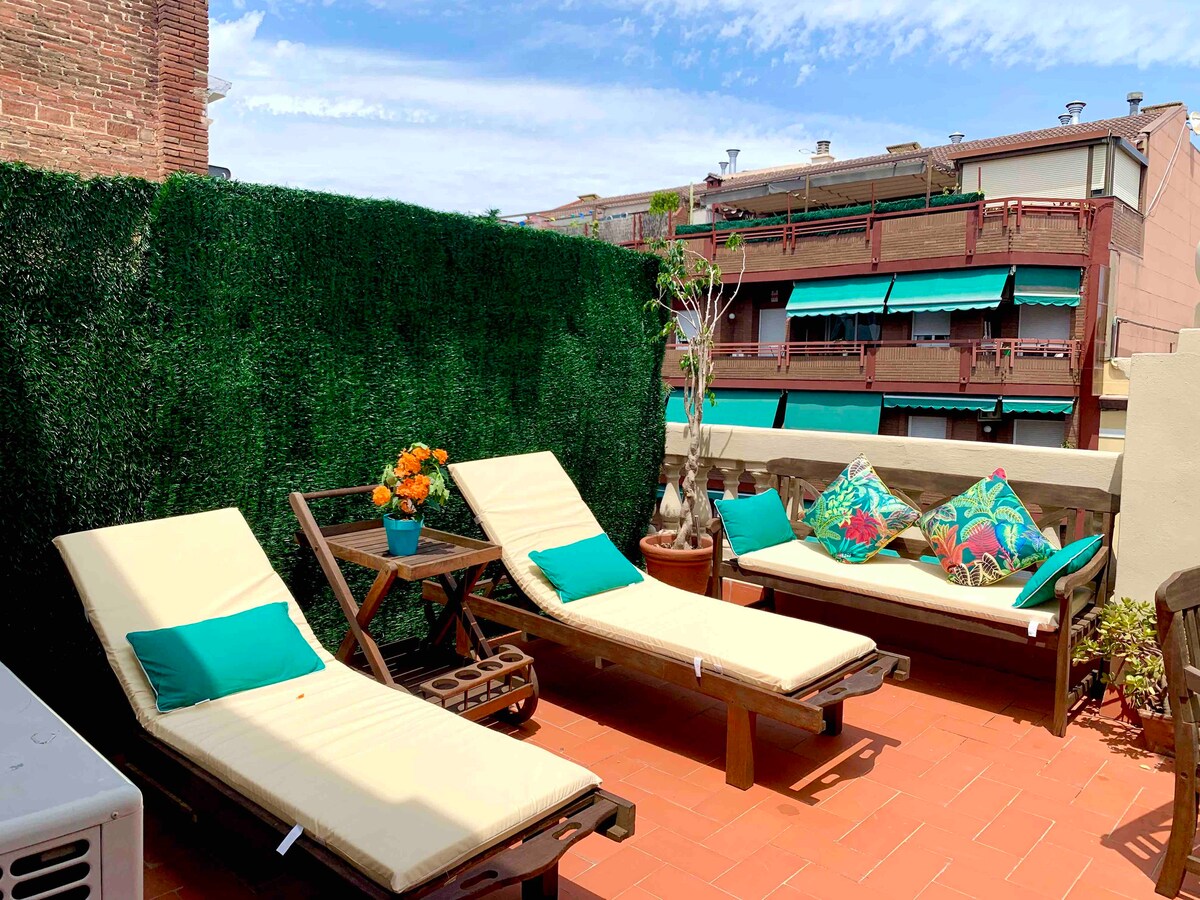 Nagyon szép és stílusos, teljesen felújított penthouse gyönyörű és nagy terasszal és szoláriumterülettel. 🟢400 méterre az L2 ENCANTS METRÓÁLLOMÁSTÓL 500 méterre 🟢a Sagrada Familia katedrálistól és 🟢600 méterre az L5 SAGRADA FAMILIA METRÓTÓL 2,5 🟢km-re a legközelebbi strandtól, a NOVA ICARIÁTÓL. 19 🟢km-re a repülőtértől Egy hosszú városi látogatás után. Pihenj ezen a gyönyörű teraszon, vagy haladj el a nap egy részében a szabadtéri teraszos zuhanyzó segítségével.