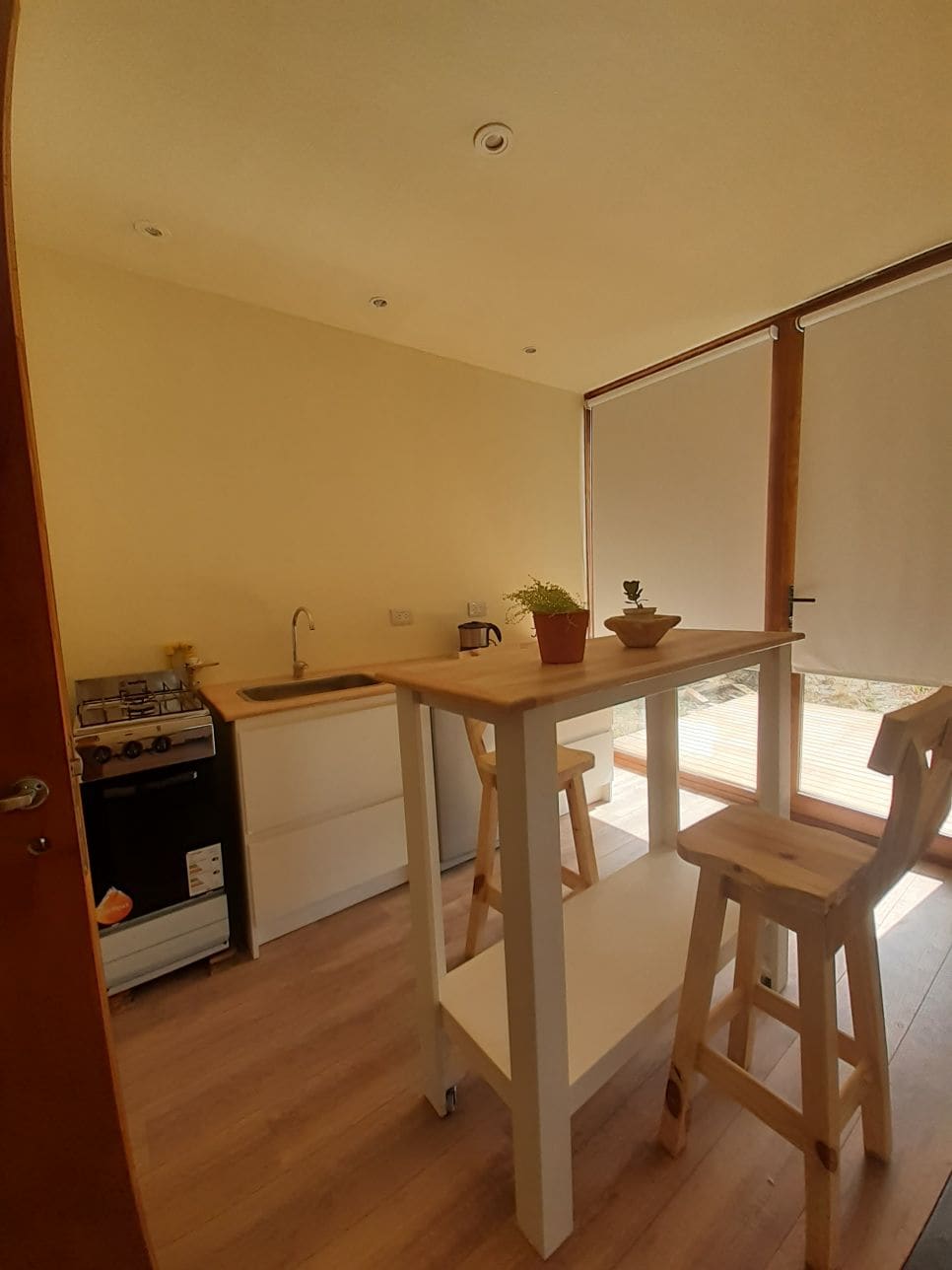 Dormi de 36 mts2 sobre la Ruta 82. Cálido y acogedor, es ideal para una pareja con chicos chicos o amigos. Muy cerca del Cerro Catedral, del Lago Gutierrez y del Nahuel. A solo 20 minutos del centro con muy buen acceso a la Ruta 40 y la Circunvalación. Baño amplio y cómodo. El lugar ideal para descansar y relajarse después de un día de mucha actividad en la montaña. Tiene muy buen wifi e inmejorable calefacción por radiadores. Se encuentra en un complejo de 3 dormis en el mismo edificio.
