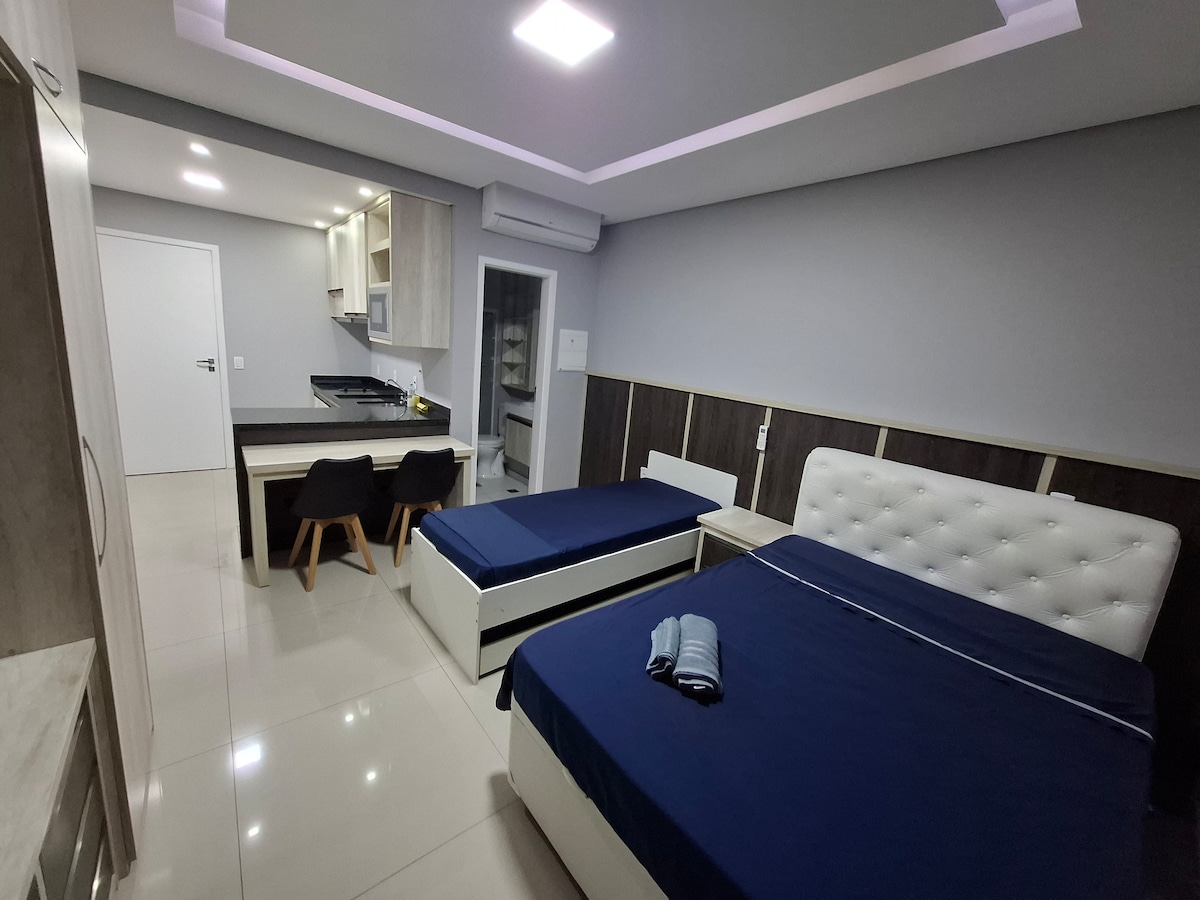 Ez a tökéletes hely az üzleti utadhoz. Alphaville központjában található, a régió fő vállalatainak központjának közelében. Modern és kényelmes dekoráció, a lakásban ingyenes wifi internet, okostévé, notebook asztal, teljesen felszerelt konyha, légkondicionálás és még sok minden más. Tartalmazza a napi takarítási szolgáltatást. Az épületben önkiszolgáló mosoda, étterem, edzőterem, szauna és gyönyörű tetőtéri medence található.