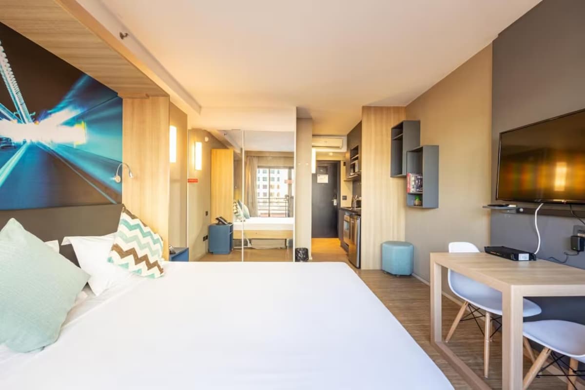 Welcome to your modern retreat in the heart of Alphaville. A space designed to offer maximum comfort to you and your family. The apartment features a comfortable double bed, TV, and internet. The kitchen is fully equipped for preparing your meals. Amenities: * Air conditioning. * Wi-Fi. * Fully equipped kitchen. * Modern bathroom. * Note: All outlets are 220V. Full access to common areas: * Gym. * Laundry. * Parking. * 24-hour concierge.
