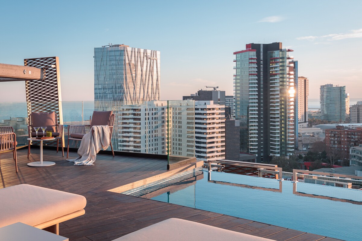 Privát loft medencével, kilátással a tengerre és Barcelonára