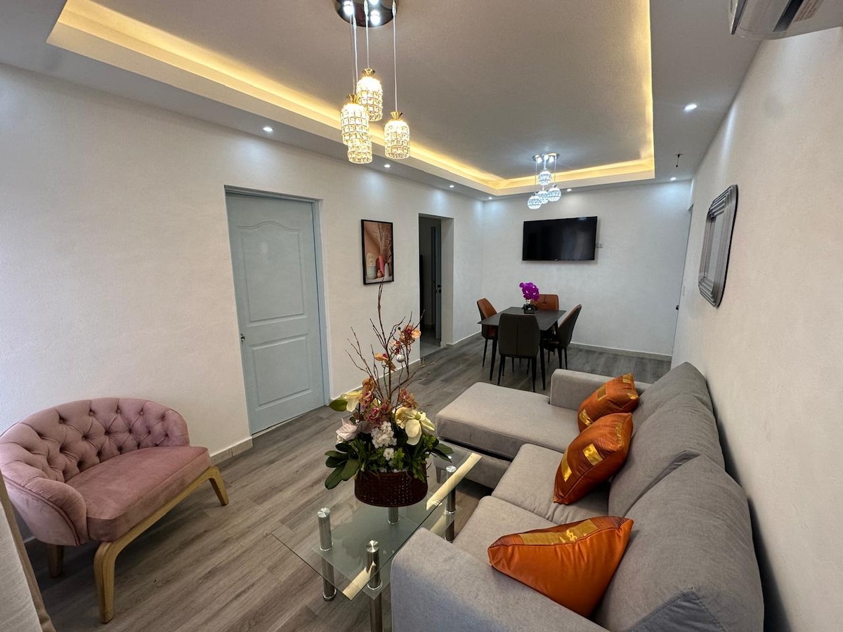 Üdvözlünk a higueyi Monte Verdében található hangulatos lakásunkban. Ez a tágas, 3 hálószobás, 2 fürdőszobás otthon kényelmet kínál. A funkciók közé tartozik a légkondicionálás minden hálószobában, az intelligens tévék, a nagy sebességű Wi-Fi, a saját erkély, a teljesen felszerelt konyha és a biztonságos parkolók. Élvezd a medencét, a kosárlabdapályát és a grillezőt. Rendelkezésre állnak olyan alapvető kellékek, mint az ivóvíz, a tusfürdő és a fürdőszobai törülközők. Kiváló elhelyezkedés: 25 percre a Punta Cana repülőtértől és 8 percre a La Altagracia katedrálistól (Bazilika)