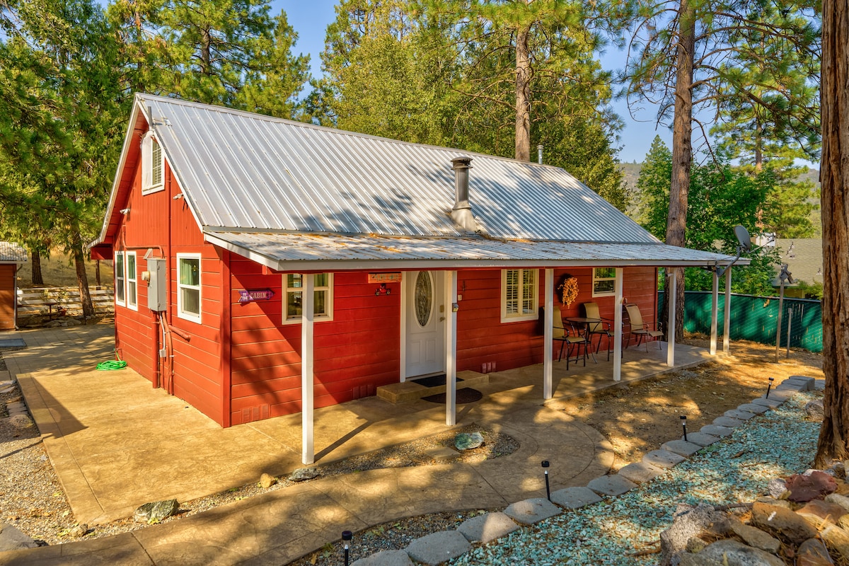 Bájos piros ajtós házikó, 12 mérföldre Yosemite-től