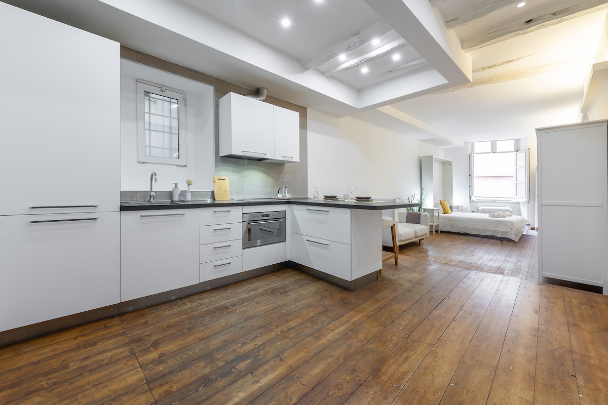 Appartement en duplex en plein cœur de la vieille ville de Cagliari, dans le quartier de stampace. Petite rue calme et colorée à proximité de la zone commerçante et du port. Logement entièrement neuf, rénové par une agence d’architecture parisienne. Grande pièce à vivre avec cuisine ouverte, très lumineux et vue sur la vieille ville. A l étage, une chambre sous le toit avec velux électrique et une verrière de type atelier, et salle de bain. Les parties communes seront prochainement rénovées.