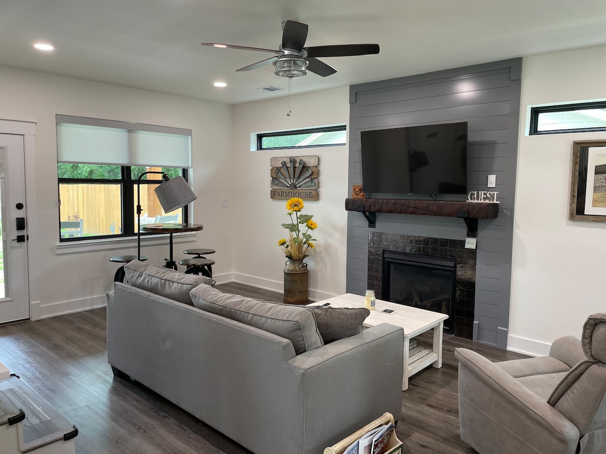 ✦ Modern, de otthonos, 600 négyzetméteres. Barndominium teljes konyhával és káddal, egy king-size ággyal, nappalival, gardróbbal, Amazonnal, Netflixszel, Disney+,Rokuval és gyors wifivel. 2022-ben építettük a barndót, és berendeztük az Airbnb számára. Van egy Roku TV a nappaliban is, amely az Amazon és a Netflix által beállított alkalmazással konfigurált mesterszobában található, amely hozzáférést biztosít a hálózathoz. Ez azt is lehetővé teszi, hogy bejelentkezz a saját streaming szolgáltatásaidba, például a Huluba, az HBO-ba, a Cinemaxba és így tovább.