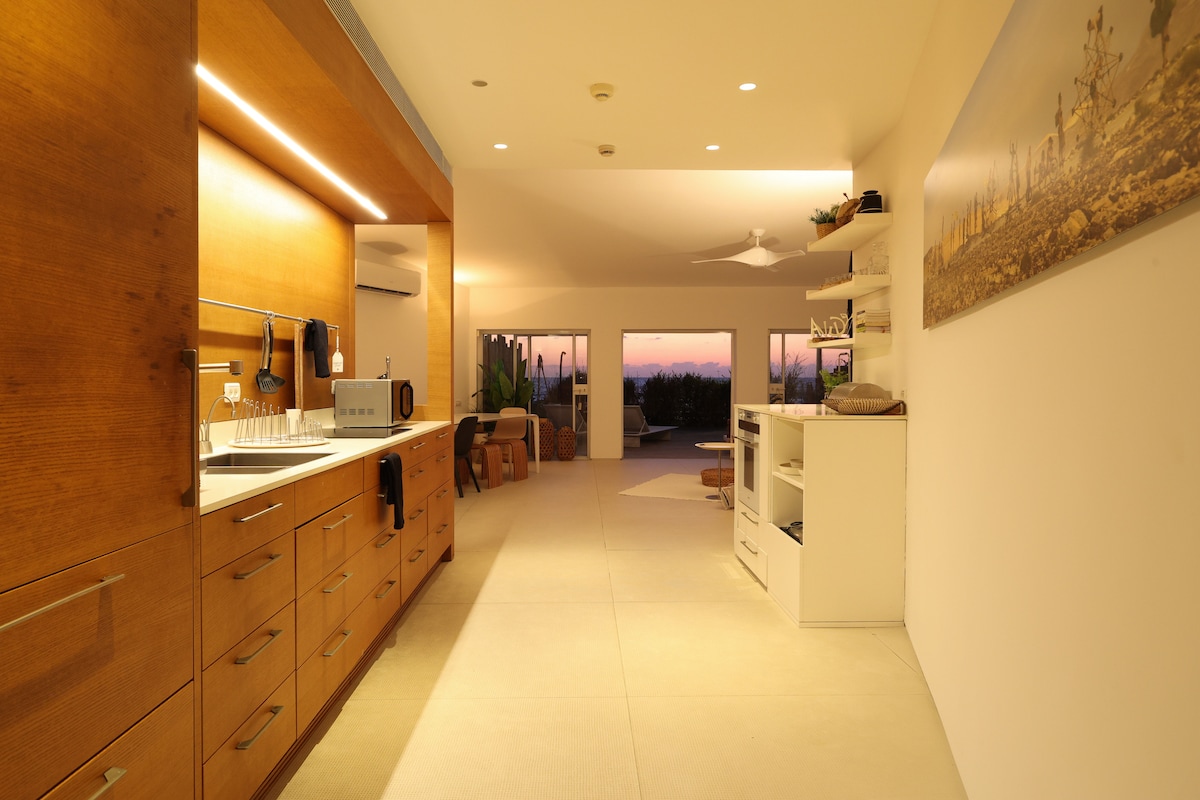 Üdvözlünk a Bat HaYamban – egy egyedülálló tengerparti lakosztályban, amely közvetlenül Bat Yam partján található, mindössze néhány perces autóútra Tel Avivtól. A saját kerteden át a homokos partra léphetsz. A sétányon nyugodtan sétálva kávézókhoz, tengerparti éttermekhez, fagylaltozókhoz és sok minden máshoz juthatsz. A lakosztály ideális pároknak vagy családoknak, akik a kényelmet, a nyugalmat és a hullámok hangját szeretnék összehozni. Az épületben nappal egy kis élelmiszerbolt is működik. A paradicsom saját kis darabja vár rád.