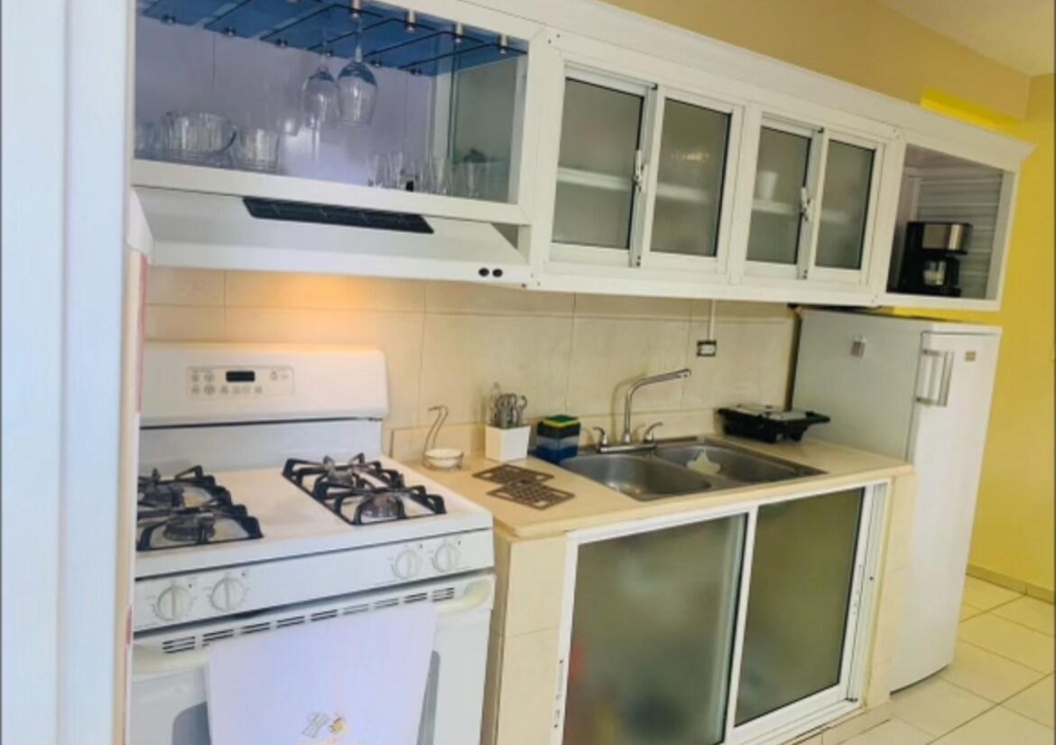 Disfruta de la sencillez de este alojamiento, tranquilo,comodo,céntrico y seguro con vista al monumento de Santiago. ubicado en un residencial cerrado con seguridad 24/7 camara de vigilancia y personal físico. garantizando seguridad y tranquilidad. (Los lunes la piscina no está disponible por mantenimiento ).