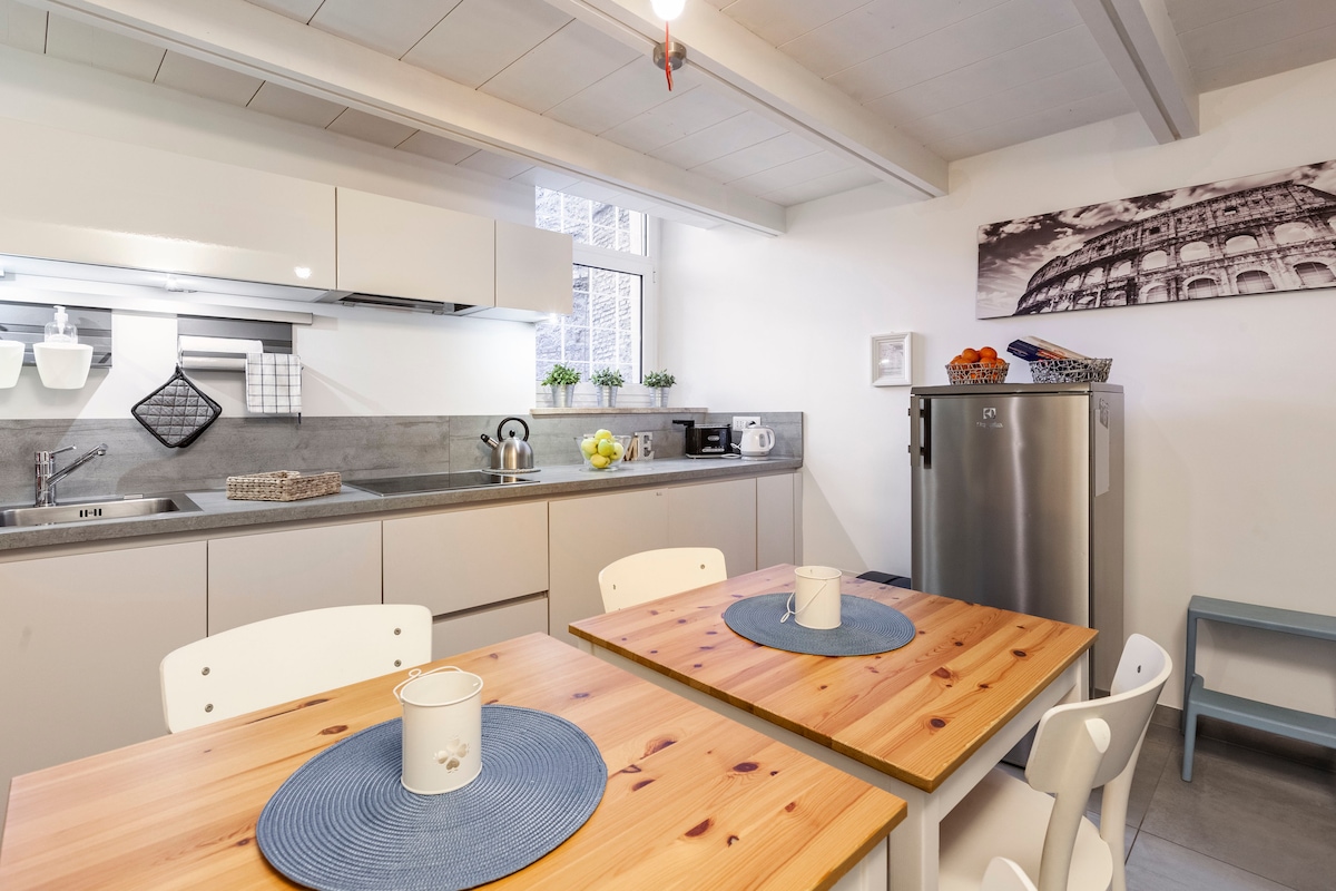 Klasszikus, sikkes hangulatú bútorok, amelyek többet érdemelnek a látványnál. Ez a lakás ideális egy családnak vagy két párnak. Tökéletes kiindulópont a város és a tipikus Trastevere környék szépségének felfedezéséhez és megtapasztalásához. Az apartman egy nagy nappaliból, 1 hálószobából, 1 hálószobából/stúdióból és kényelmes kihúzható ággyal, 1 fürdőszobából és egy kis, teljesen felszerelt konyhából áll.