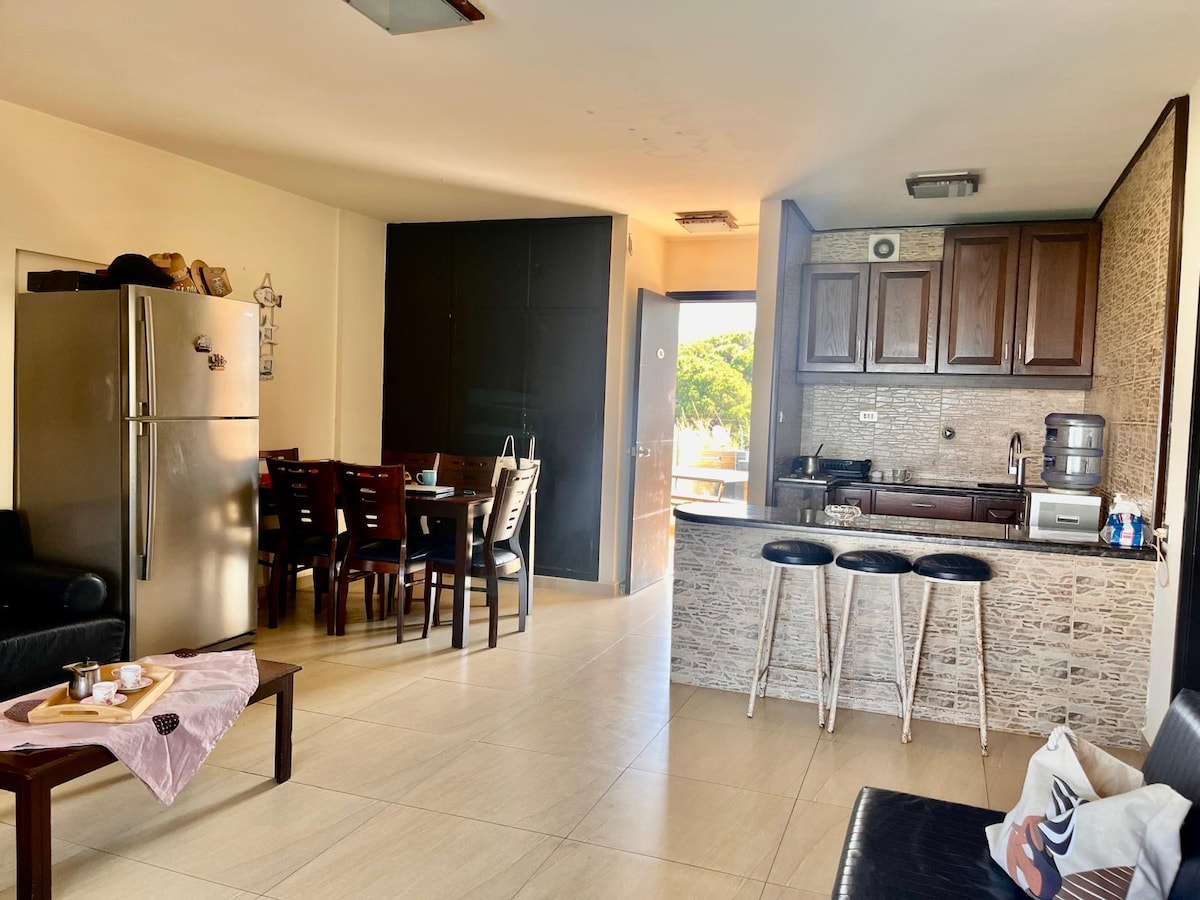 Teljesen felszerelt konyha, egy queen és 3 egyszemélyes összecsukható ágy, központi légkondicionáló, mikrohullámú sütő, nagy méretű új hűtőszekrény, 32 hüvelykes TV, vízadagoló, függönyök, bár, nagy erkély, osztott nagy szekrény, nagy szekrény, kijelölt parkoló