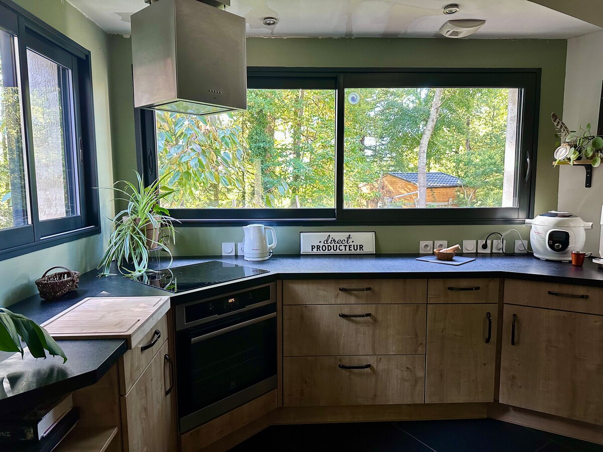 Vous rêvez d’un magnifique chalet dans les arbres, en bord de rivière? Vous ne voyez ça que sur Insta, au Canada ou aux USA? Ne cherchez plus, vous avez trouvé vos prochaines vacances en France! A seulement 20 minutes d’Angers (Ville préférée des français!), venez découvrir ce magnifique chalet neuf en bois, dans son environnement unique, entouré d’arbres, au bord du Loir, avec son ponton privé (2 kayaks a disposition, 6 adultes maximum) Profitez-en pour découvrir de nombreux châteaux!