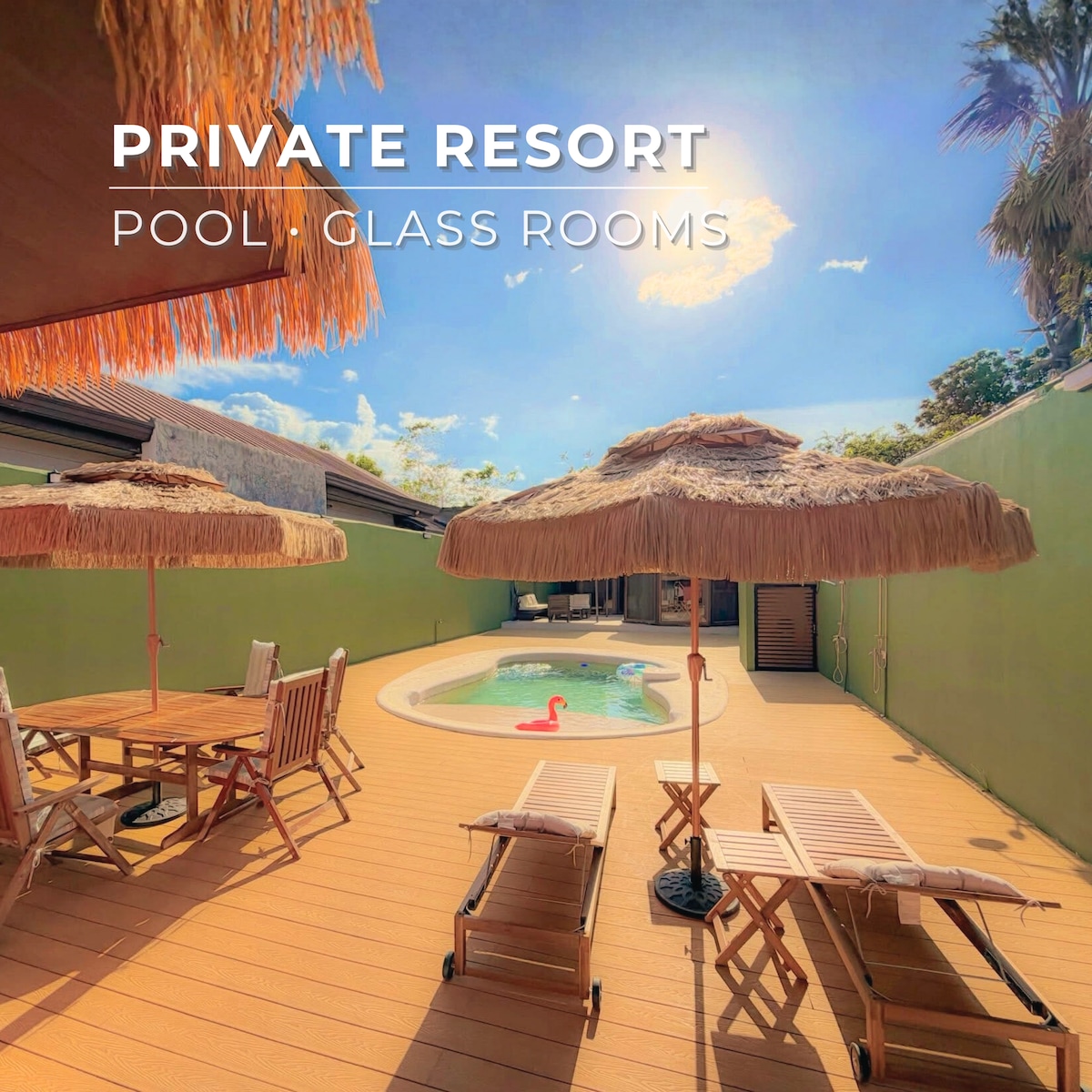 Ohana Hale is a private villa buyout in Sta. Ignacia, Tarlac—ideal for reunions, celebrations, and balikbayan escapes. Enjoy exclusive access to the villa and private main pool, with 4 spacious bedrooms plus 2 poolside bunk rooms, all with sofa beds and extra folding mattresses for flexible group stays. Features 6 bathrooms, 3 living rooms, dining hall, and dual kitchens. Our vibrant on-site restaurant enhances the resort atmosphere and dining convenience, while the pavilion pool remains shared.