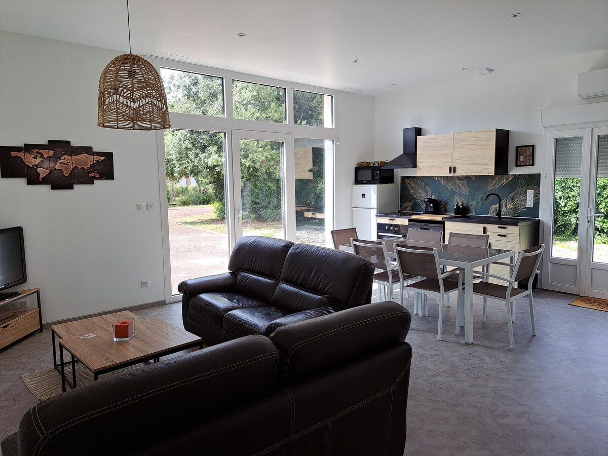 Pihenj ezen a békés, felújított helyen négy vendég számára. Kényelmes helyen található az Észak-Gironde-ban, nem messze Saint Emiliontól és Dordogne-tól. Bútorozott és felszerelt konyha, zuhanyzóval ellátott fürdőszoba, kanapéággyal ellátott nappali és bőséges tárolóhelyet kínáló hálószoba áll rendelkezésedre. De van egy szabadtéri sarok is asztallal, biztonságos parkoló kamerával. Szükség esetén lehetőség van motorkerékpárok fedett helyen történő parkolására.