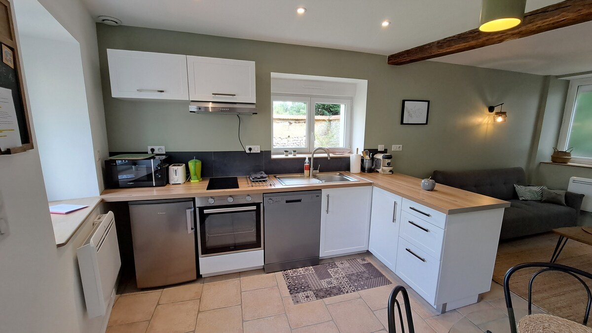 A 1h de Paris, venez vous reposer pour un week-end ou pour une plus longue durée dans cet ancien fournil. Maisonnette située au calme, à 2 km de Bonneval et de ses commerces. Une cuisine équipée (four, m-ondes, lave-vaisselle, frigo) ainsi qu'un lave-linge sont à votre disposition. A l'étage, la chambre est composée d'un lit 2 places (140x90) et d’un espace bureau. Le canapé est convertible, adapté pour des enfants. Réduction supplémentaire pour des réservations à la semaine. Devis sur demande.