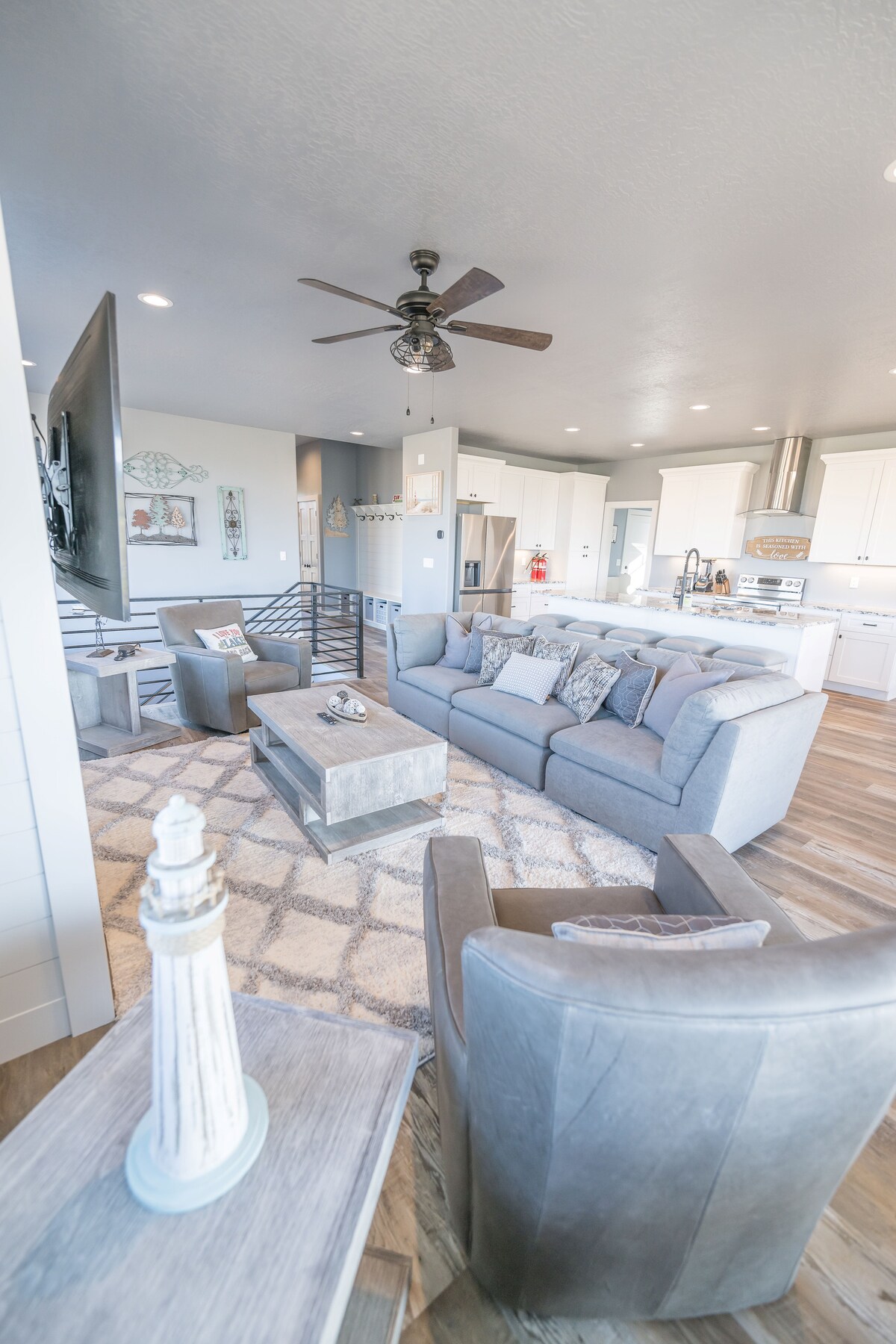 BlackRidge LakeHouse - ahol csodálatos kilátás nyílik a Bear Lake-re! Lazíts ezen a nyugodt, stílusos helyen. Ez a 3 hálószobás, 3 fürdőszobás otthon, ahonnan lenyűgöző kilátás nyílik a tóra, eláll a lélegzeted! Minden részletre gondoltak. Ideális tengerparti hozzáférést kapsz, így úszhatsz a medencékben, pihenhetsz a jacuzziban, vagy játszhatsz a parton. Gyere haza, és lazíts a teraszon, játssz cornhole-t vagy kosárlabdát. Még egy hálószoba is van a gyerekeknek! Gyere ki, és élvezd a legjobbat abból, amit a Bear Lake kínál!