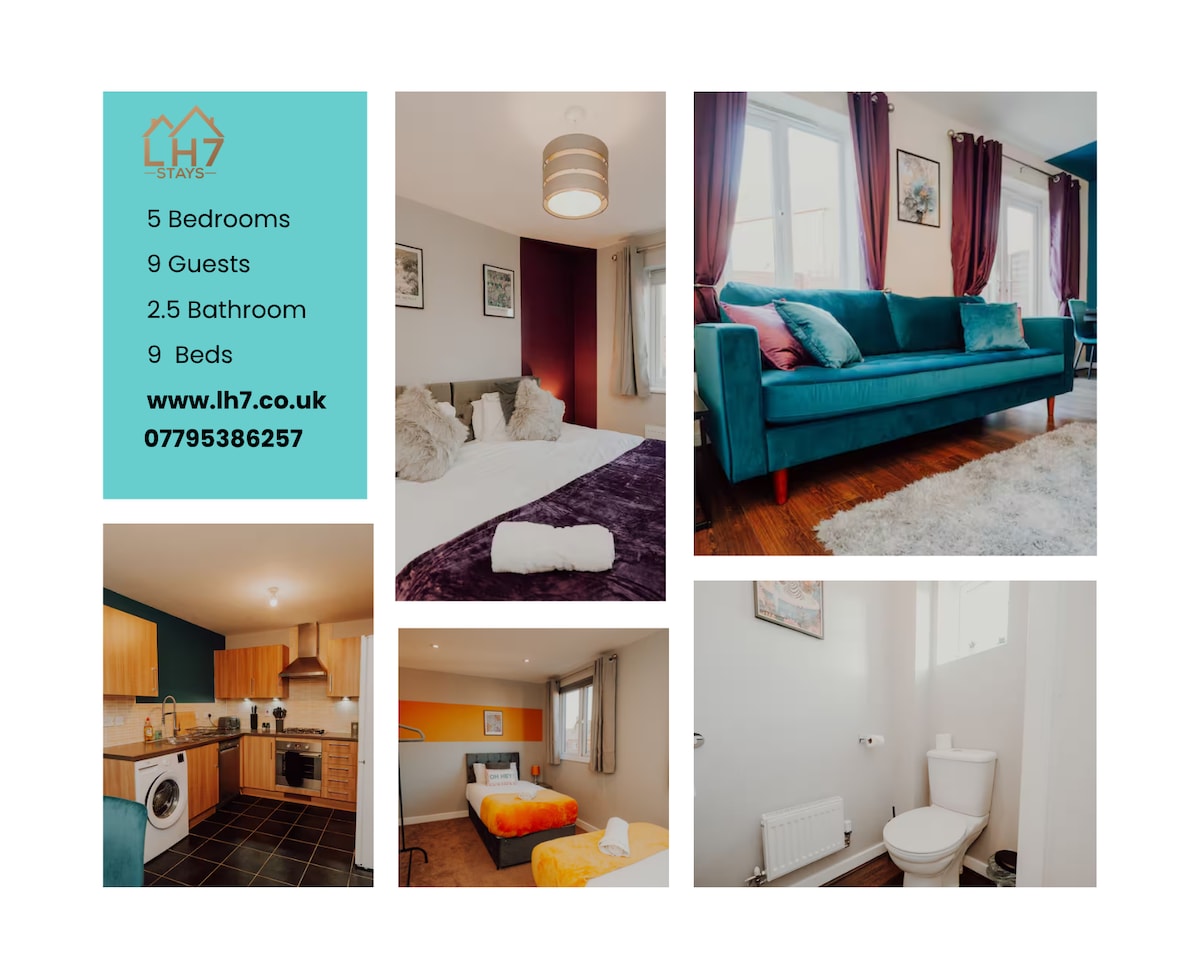 3 hálószoba 5/6 fő részére – Higham Ferrers. Ingyenes autós töltő.