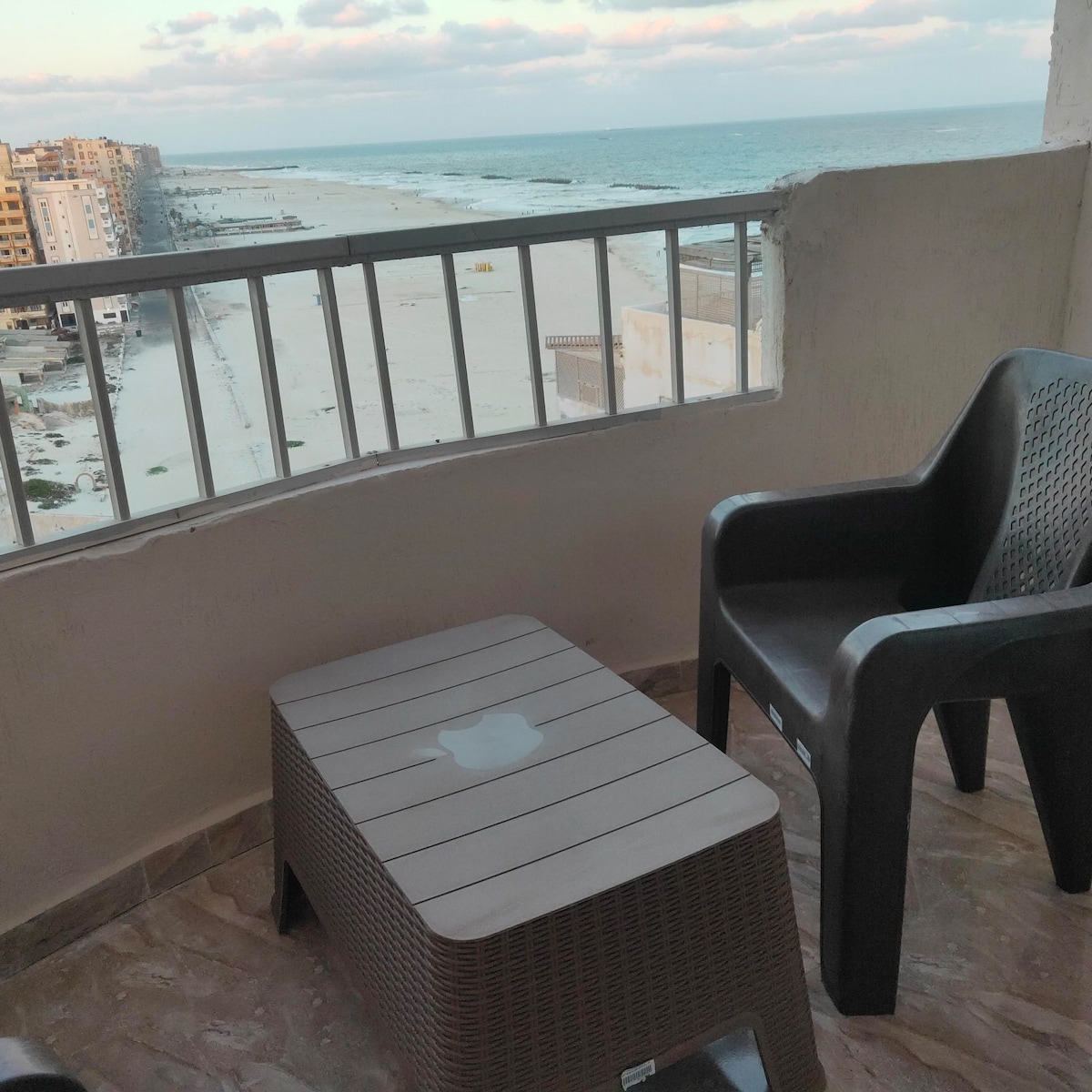 Stylish apartment by the sea, it has 2 bedroom large reception area with corner sofabed and wide space for big family very neat and has new furniture and appliance. A/C Kitchen equipped with utensils , microwave ,also stove and oven. wide T.V screen 32" with 1000 channel also smart in the reception. wide balcony side view from building 11 floor The sound of the sea is very relaxing and helps you sleep. 24 hour security,ccctv,a gatekeeper and maid to assist our guests. Delivery to doorstep