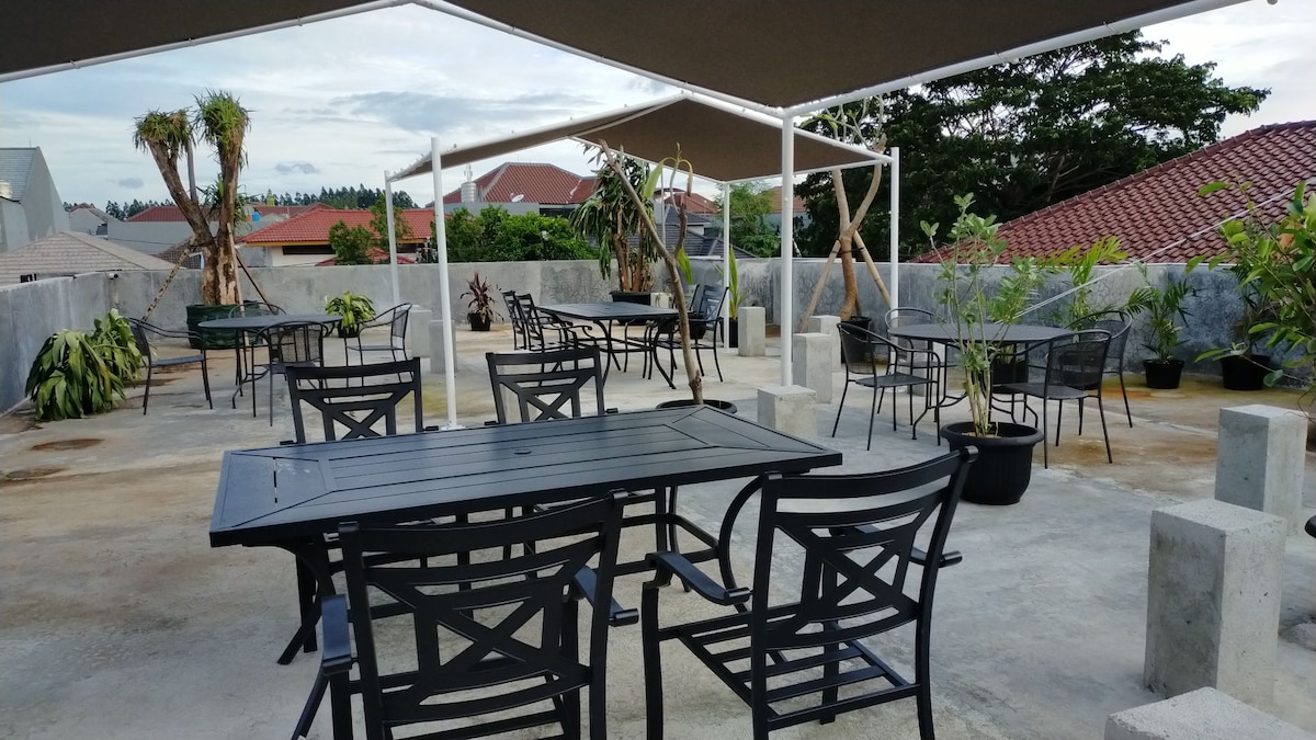 a főúton található, mindössze 200 méterre a Colonel Soegiono autópályától. mindössze 20 percre Kuningantól vagy a Kota Kasablanka bevásárlóközponttól. minden szobában van egy King Koil matrac puha takarókkal és párnákkal, valamint tető. A kapacitás 16 fő + 9 fő, ahol 7 szobát 3-3 fővel, 2 szobát pedig 2-2 fővel töltünk meg. 500 000 IDR kauciót kell fizetni, amely fedezi a veszteséget vagy kárt, és 3 napon belül visszatérítjük távozás után