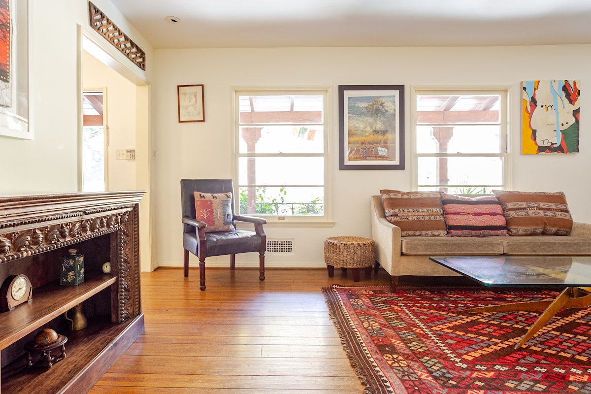Ez az aprólékosan megtervezett, 450 négyzetméteres privát házikó tökéletes oázist biztosít - egy nyitott, szellős hely boltíves mennyezettel és rengeteg természetes fénnyel. Élvezd a 110 hüvelykes, térhatású vetítővásznat, hogy esténként filmes élményben legyen részed, vagy igyál egy pohár bort a saját tűzrakóhelyed mellett. Egy igazi menedék! INDOORS-- Új építésű - ez egy 450 négyzetméteres mennyország szelet a következőkkel: •Boltíves mennyezet és két tetőablak (távirányítású árnyékolókkal) •Teljes méretű konyha modern készülékekkel, beleértve az LG hűtőszekrényt, kenyérpirítót és Keurig kávéfőzőt •Médiaközpont korszerű hangrendszerrel, Bluetooth-kapcsolattal, filmvetítővel és 110hüvelykes filmvászonnal (Hello STAR WARS!) • Queen méretű Murphy-ágy memóriahabból és rugós tekercsekből készült kényelmes hibrid matraccal, szekrény bőséges gardróbbal és korongvilágítással (ideális egy kis késő esti olvasáshoz) •Hangulatos reggeliző sarok kényelmes ágyneműpárnákkal • Apajta ajtaja egy tágas fürdőszobára nyílik a következőkkel: márványpadló - kerítés nélküli üveg zuhanyajtók - tágas, teljesen felszerelt, bejárható, ülős zuhanyzó márványpadpal - túlméretezett zuhanyfej - tágas hiúság • Kocsiajtók, amelyek kinyílhatnak, hogy élvezhessék a nap pompáját OUTDOORS - Egy üdülőhely-szerű hátsó udvar vár rád a következőkkel: •Újonnan épített úszómedence (W 38'Lx9') •Gyönyörű és nyugodt tereprendezés •Lenyűgöző környezeti világítás •Tűzrakóhely •Étkezőasztal •Luxus kanapé nyugágy •2 bárszék A kisház a főépület mögött található, így rengeteg magánéletet élvezhetsz. A hátsó udvart használhatod a szálláshelyen eltöltött időd során, beleértve a szabadtéri étkezőterületet, a kültéri kanapét, a bárszékeket, a tűzrakóhelyet és az úszómedencét. Pihenj és élvezd!! ÉRKEZÉS: 15:00 TÁVOZÁS: 11:00 PARKOLÁS: Érkezéskor biztosítunk parkolási engedélyt (éjjel-nappal). Ha egy éjszakánál hosszabb időre szállsz meg a szálláshelyen, arra kérünk, hogy minden nap cseréld ki a nappali engedélyt. Általában bőven van parkolóhely, így a hely megtalálása nem jelenthet problémát. JOGI NYILATKOZAT: (1) NINCS VÍZIMENTŐ SZOLGÁLATBAN, ÍGY AZ ÚSZÁS A SAJÁT FELELŐSSÉGEDRE TÖRTÉNIK. (2) A MEDENCÉBEN TÖRTÉNŐ BÚVÁRKODÁS NEM MEGENGEDETT. (3) A MEDENCÉT NEM MELEGÍTJÜK FEL. A MELEGEBB HÓNAPOKBAN A MEDENCE 76-80 FOK KÖRÜL MARAD. NE FELEDD AZONBAN, HOGY HIDEGEBB IDŐBEN (LEGFELJEBB 65-68 FOK) HŰVÖSEBB LESZ. (4) A PARKOLÁS AZ UTCÁN A SAJÁT FELELŐSSÉGEDRE TÖRTÉNIK. BÁR SOHA NEM TAPASZTALTUNK PROBLÉMÁT, NEM TUDJUK GARANTÁLNI AZ AUTÓD BIZTONSÁGÁT. (5) HA ELFELEJTED HELYTELENÜL ELHELYEZNI A PARKOLÁSI ENGEDÉLYEKET AZ AUTÓDBAN, VAGY HELYTELENÜL ELHELYEZNI ŐKET, ÉS JEGYET KELL KAPNOD PASADENA VÁROSÁTÓL, A TE FELELŐSSÉGED LESZ A JEGY KIFIZETÉSE. Azzal az elképzeléssel működünk, hogy ha elutazol vagy üzleti úton vagy, valószínűleg minőségi egyedüllétre és magánéletre vágysz. Ezt tiszteletben tartjuk, amíg itt vagy. Természetesen szeretjük a jó csevegést, de teljes mértékben rajtad múlik. Ha bármire szükséged van, csak írj nekünk. Általában este 11-ig vagyunk elérhetők. Ha bármilyen okból nem vagyunk elérhetők, nyugodtan hagyj nekünk üzenetet, és a lehető leghamarabb felvesszük veled a kapcsolatot. Vészhelyzet esetén vagy az ingatlanhoz való hozzáférés esetén éjjel-nappal elérhetőek vagyunk. A vendégház nyugodt menedéket kínál a civilizáció közelében. A metró és a különböző éttermek gyalog is könnyen megközelíthetők. Pasadena belvárosa egy rövid biciklizés, egészséges séta vagy rövid autóút. Pasadena egy gyönyörű város, ahol rengeteg a látnivaló! 10 perc sétára vagyunk a Lake Gold Line metróállomástól, ahol elérheted a Gold Line vonalat Dél-Pasadenába, és élvezheted a Mission Street üzleteit/éttermeit, a Del Mar megállót, ahol a híres Rose Bowl bolhapiacon (minden hónap 2. vasárnapján) a Union Square megállónál élvezheted az Olvera Streetet (margarita, bárki?) vagy egy finom francia mártogatós szendvicset a Phillipe 's-től. Ha múzeumot keresel, hagyd el a Memorial Park Stationt, és találd meg a Norton Simon Múzeumot, amely Los Angeles környékének egyik legjobb vizuális művészeti gyűjteménye. Pasadena belvárosa csodálatos üzleteivel és éttermeivel mindössze 5 perc alatt elérhető kerékpárral vagy autóval (vagy azoknak, akik élvezik a testmozgást, 30 perc sétára). Van két imádnivaló kutyánk. A kisházhoz azonban soha nem férnek hozzá, így allergén-/háziállatmentes. Amíg itt vagy, boldogan tartjuk őket a házban, és csak a főépület előkertjében engedjük ki őket, hogy elvégezzék a dolgukat. Néha hallhatod az ugatást, mert szeretik megvédeni a tanyájukat. De a legvalószínűbb, hogy soha nem fogod hallani őket, mivel a kisház kényelmes távolságra van. Barátságosak, és szeretnek új emberekkel találkozni!