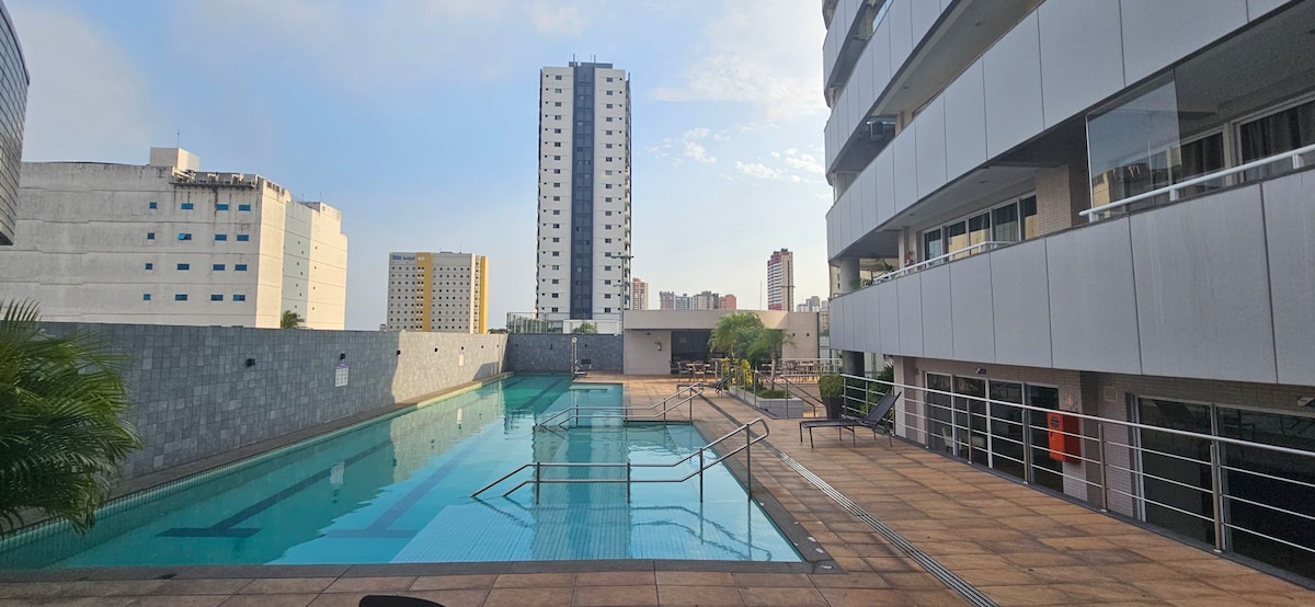 Loft moderno e climatizado em prédio de alto padrão. Ideal para executivos, casais e turistas. No imóvel: • Sala de estar/jantar integrada com Smart TV. • Cozinha completa • Wi-Fi veloz • Banheiro completo • Área de serviço c/ lavadora • Ampla sacada No condomínio: • Vaga de garagem gratuita • Piscinas externa e coberta aquecida • Sauna • Sala de massagem e reunião (com agendamento) • Lavanderia pay-per-use • Mini mercados • Garagem privativa • Portaria 24h