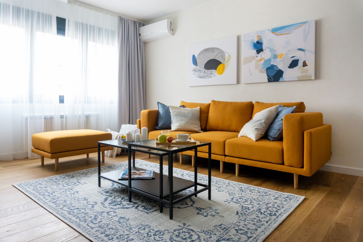 This 80 square meters apartment has two bedrooms divided by large kitchen/dining/living area. The apartment is located in walking distance from major Belgrade touristic sites – National Assembly, Museum, and Theater, Knez Mihajlova street, Kalemegdan Fortress, Skadarlija (the bohemian quarter). The guests can find various food and drink options at nearby restaurants, cafes, and pubs. Some of the top-rated dining places are in this area. There is a 24/7 grocery store down on the corner.