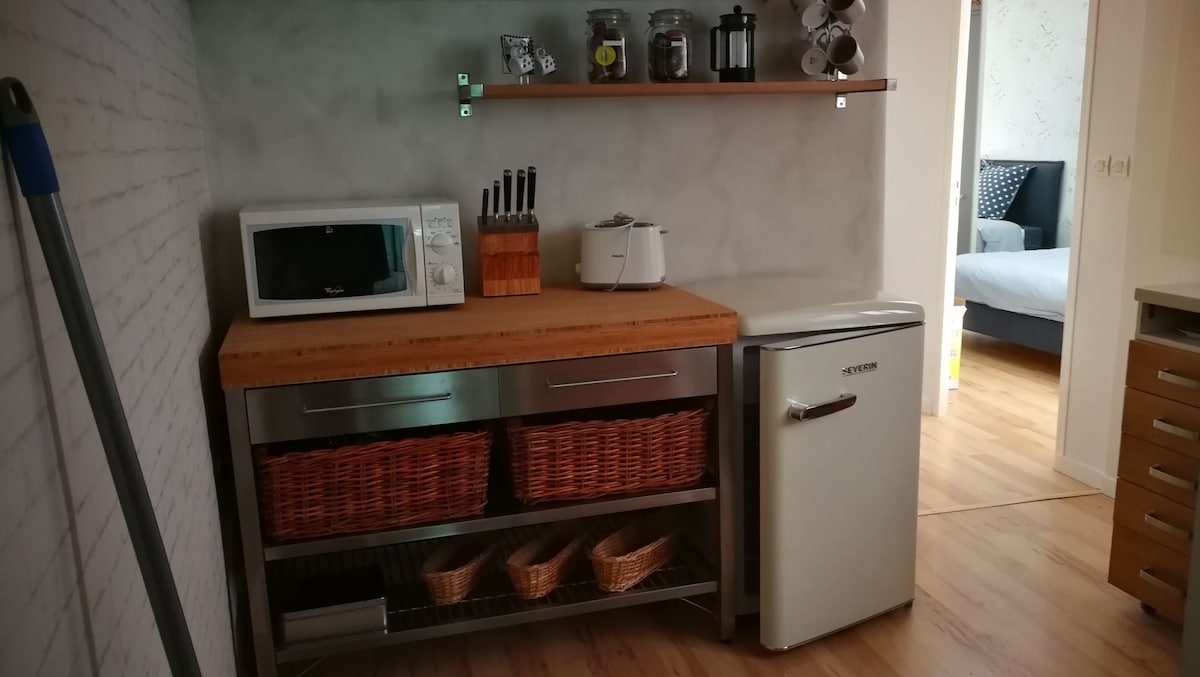 Au calme et tout proche de l'essentiel, ce studio est le pied a terre parfait pour découvrir Verdun. A seulement 5 minutes à pied du centre ville et des principaux sites historiques, il réunit confort et simplicité: un vrai coin nuit, un espace salon cosy pour se détendre, une cuisine pratique pour des repas rapides et une salle de bain avec baignoire pour souffler après la journée. Parfait pour une escapade à deux ou un séjour solo. Une caméra de surveillance se trouve au-dessus de la porte ext