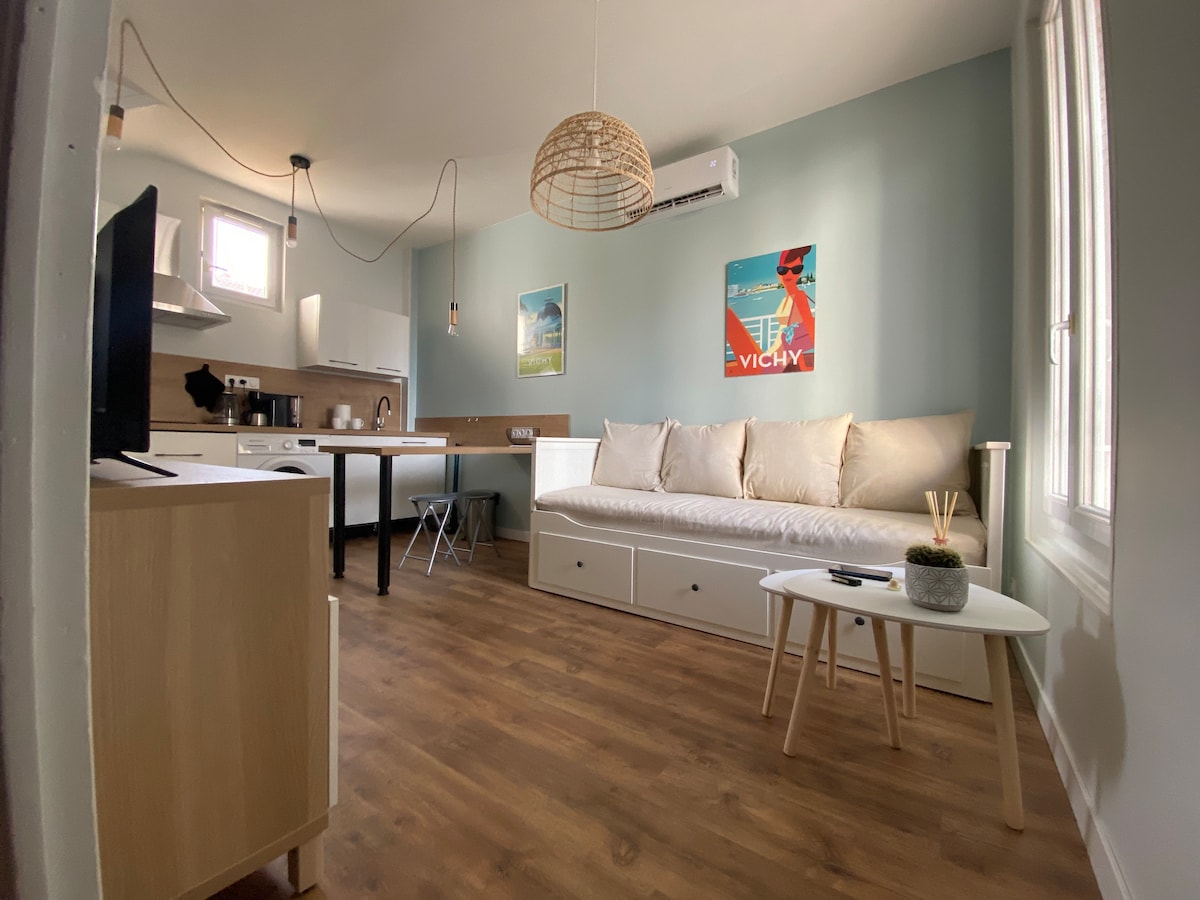 A Monts d 'Auvergne és a Montagne Bourbonnaise kapuinál egy kellemes kis házat kínálok neked, amelyet 2022-ben teljesen felújítottak. Ideális helyen, 15 perc sétára található Vichy központjától, parkjaitól és termálfürdőitől. Bus stop at the end of the street and bike rental (5 minutes away) to take the many bike paths. Kicsi, zárt udvar a ház hátsó részén kerti bútorokkal. Ingyenes parkolás a ház előtt. Kulcstartó