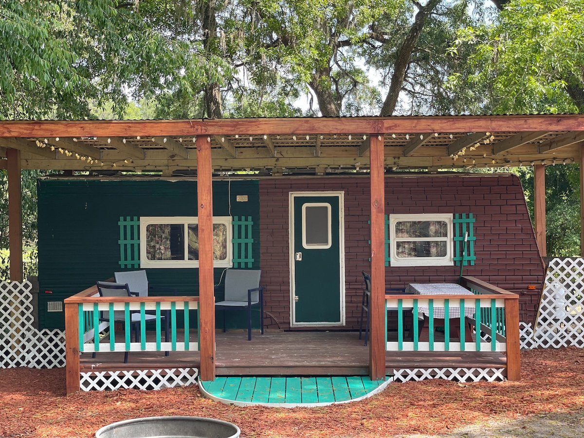 Make memories with the ones you loves at this unique Countryside loft feeling cottage with an elegant mix between rustic and modern aesthetic. We are a pet friendly Cottage, bring your furry friend and enjoy the coziness. This is a family wood gated compound. Each cottage are private, surrounded by beautiful común areas. Surrounded by a lot of natural springs and also the convenients of local restaurants like “Gators Joes Beach Bar & Grill” at just 6m walk, 6m walk to Lake Weir, and more.