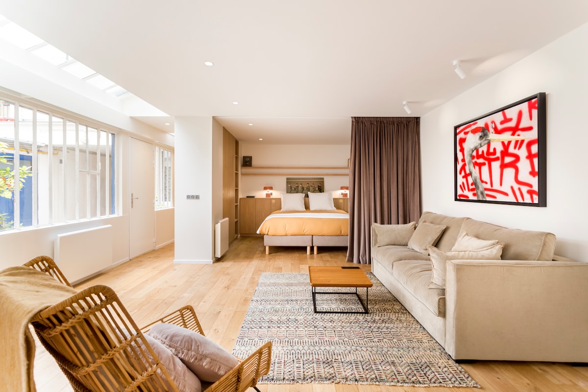 A Boutik Bohème egyedi és karakteres lakások gyűjteménye Párizs leghitelesebb és legkeresettebb környékein. A korábbi műterem tágas terekkel és egyedi hangulattal várja a családokat vagy baráti társaságokat, mindössze 5 percre a Ménilmontant metróállomástól. Élénk és autentikus környéken található, távol a fő turisztikai területektől, ugyanakkor nagyon közel a nyüzsgő 11. kerülethez, amely a tehetséges fiatal szakácsok által vezetett számos étteremről ismert.