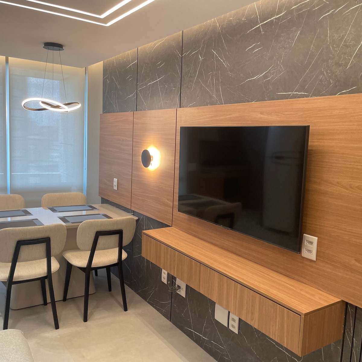 Modern lakás, 32m2, Sion legjobb pontján található. Konyhai edzés minibárral, főzőlappal, TV-vel (nyitott csatornák/Netflix), légkondicionálóval, hajszárítóval, elektromos vízforralóval és internettel. South Zone, next to JK Square and Bandeirantes Avenue, facing a Supermarket. Az épület teteje edzőteremmel, szaunával, úszómedencével, nappalival és közösségi konyhával (víz, jégkészítő). Igény szerinti takarítás áll rendelkezésre. Biztonságos épület 24 órás portaszolgálattal. *Garázs nem jár hozzá.