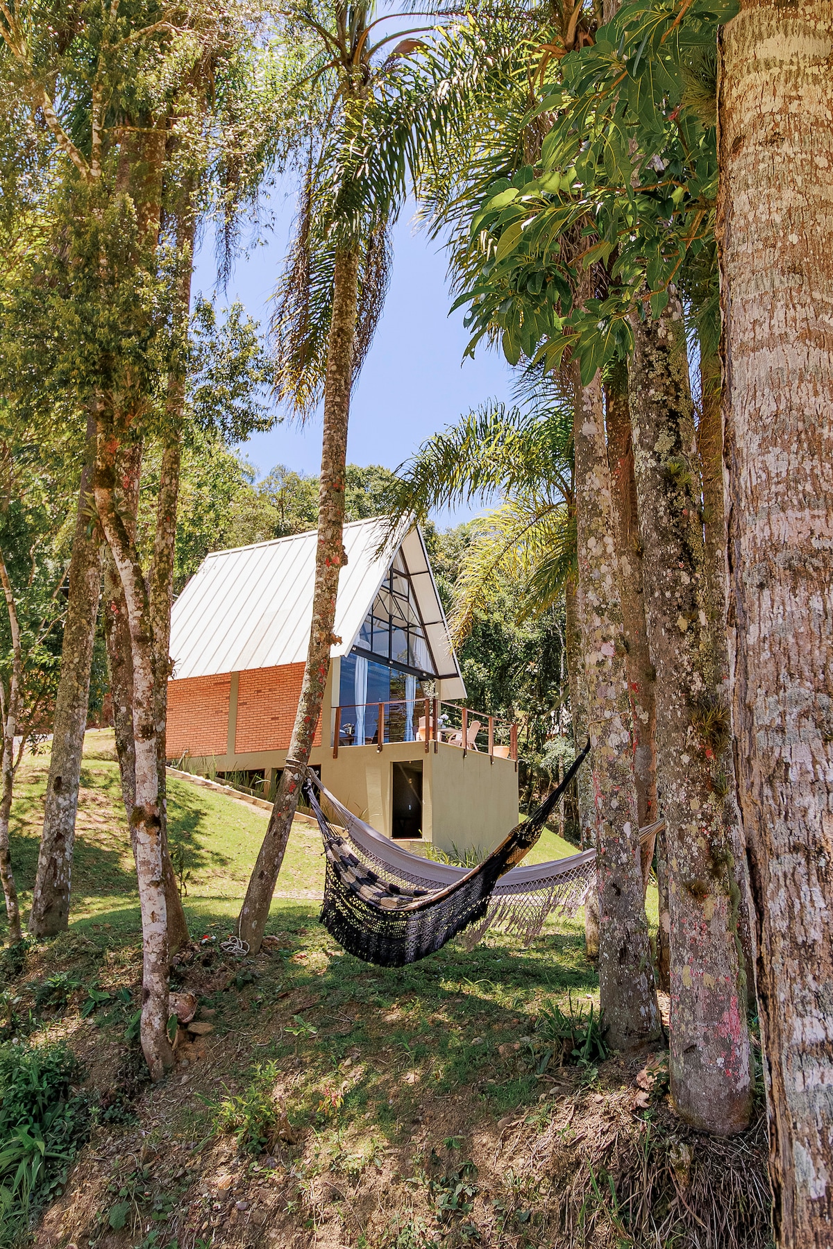 Pihenj ezen a csendes és stílusos helyen, 15 km-re Doutor Pedrinho központjától, Cachoeira Véu de Noiva közelében, egy privát farmon. Romantikus víkendház beltéri káddal, rusztikus konyhával, kandallóval, rusztikus fürdőszobával, fatörzs mosdókagylóval, gázzal fűtött vízzel, galériával és nagy ablakokkal, hogy élvezhesd a természetet. Kültéri terület nagy terasszal, tűzrakóhellyel és függőággyal a fák között. Gyere, és fedezd fel ezt a sok szeretettel és odaadással létrehozott helyet! 💙🏡🌑