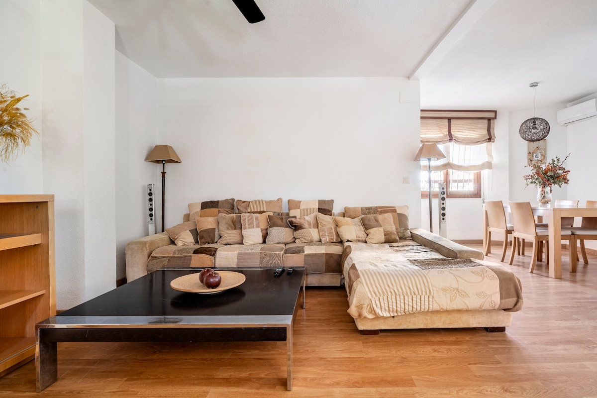 Teljesen felújított, modern stílusú sorház mindössze néhány méterre a homokos strandtól, éttermektől, kávézóktól és 900 méterre Moraira falutól. Tengerre néző kilátás, közös medence, üvegszálas internet, légkondicionálás minden szobában, szúnyoghálók, Smart-TV, mosogatógép és mosógép. Nagy privát terasz gázgrillel, asztallal, székekkel és esernyővel. Saját parkolóhellyel rendelkezik a közösségi helyiségekben. Figyelmes és komoly házigazda spanyolul beszélő.