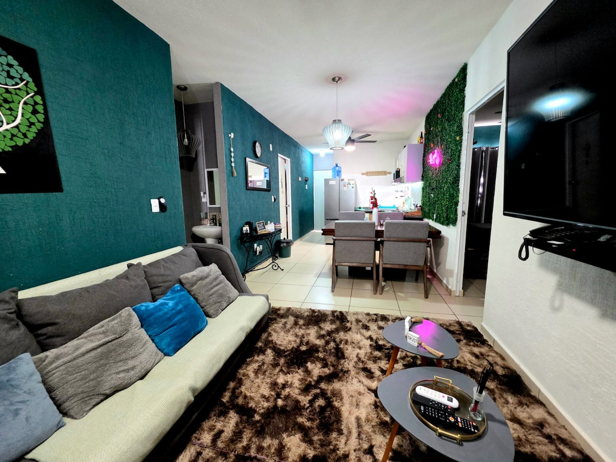 Tágas és világos földszinti lakás, ideális családok, barátok vagy csökkent mozgásképességű vendégek számára. 3 hálószobával, 3 teljes fürdőszobával, nappalival, étkezővel, teljesen felszerelt konyhával, Wi-Fi-vel, 65 hüvelykes okostévével és ingyenes parkolással rendelkezik. Cancún belvárosában található, mindössze 5 percre a szállodai zónától és 20 percre a repülőtértől, szupermarketekkel, éttermekkel és üzletekkel sétatávolságra. Tökéletes a Riviera Maya kirándulásokhoz vagy a tengerparton való pihenéshez teljes kényelemben és stílusban.