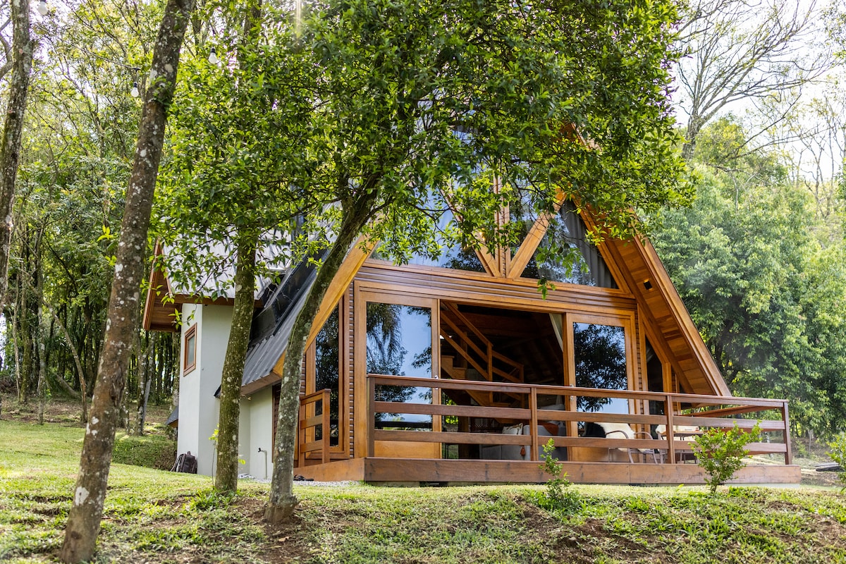 Nossa cabana está situada no coração do Vale dos Vinhedos, uma região renomada por suas vastas parreiras de uva e pelas experiências únicas que proporciona aos visitantes. Esse espaço foi criado com muito carinho e cuidado, proporcionando um refúgio acolhedor e aconchegante. Um lugar perfeito para quem busca tranquilidade, contato com a natureza e o charme dos vinhedos.