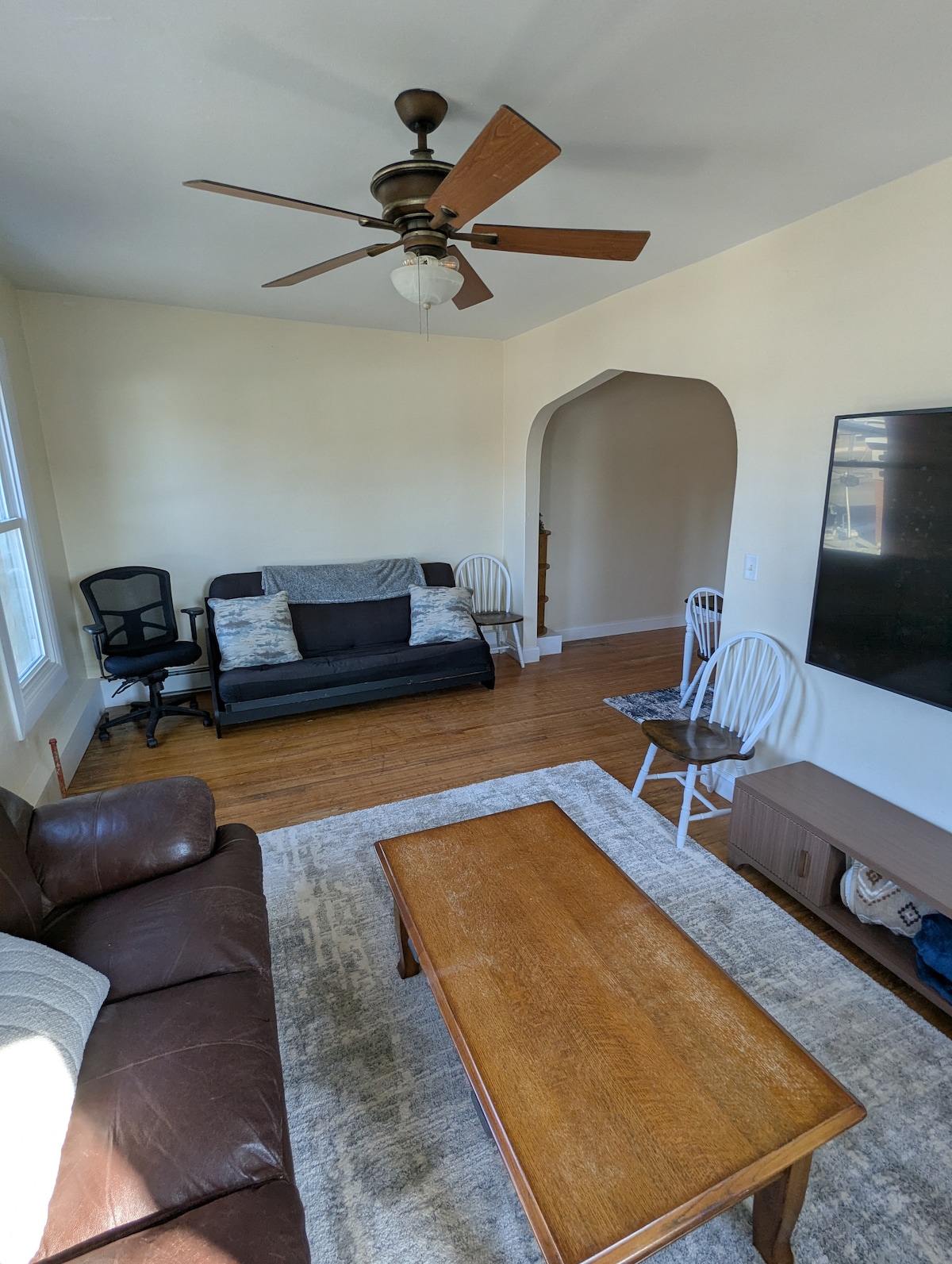 Újonnan felújított, két hálószobás, egy fürdőszobás lakás egy történelmi épületben, közvetlenül St. Cloud belvárosa és az SCSU campus mellett. A lakás jól felszerelt és hangulatos, napközben remek a fény. A hely egy hangulatos nappalival rendelkezik, amelyben egy 75 hüvelykes Roku TV várja, hogy minden streamelési és szórakozási igényedet kielégítse. Két franciaágy és egy futon található itt. A helyszíni parkolás és az ingyenes mosás miatt ez a lakás nagyon jó ár-érték arányú. Megjegyzés: Ez egy második emeleti lakás lépcsővel, kérjük, ennek megfelelően tervezz.