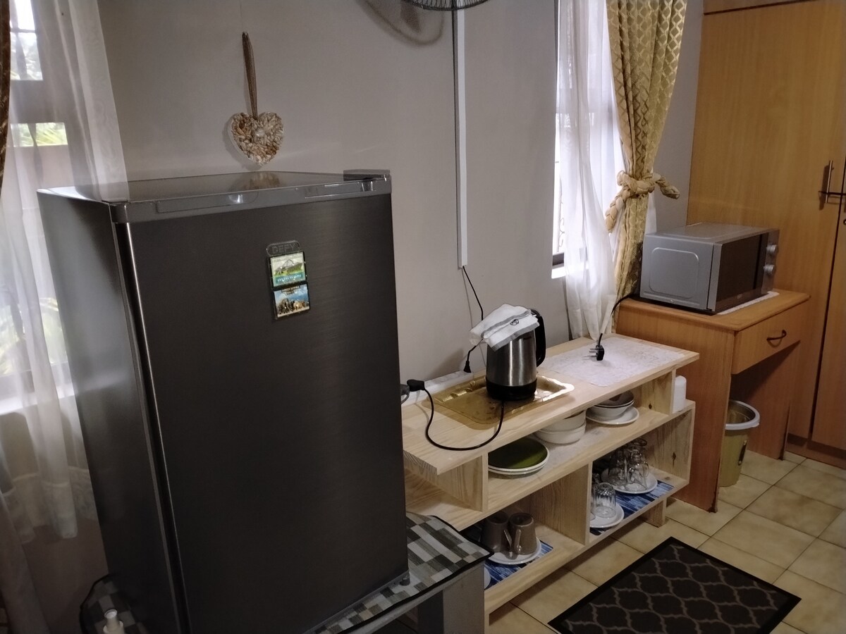 Hogy üdvözöljünk a világunkban, a dekoráció semleges csillogás, privát és békés környezetben a Cowies Hillen, egy nagy terasszal, amely egy természetvédelmi területre néz. Jellemzők: légkondicionáló fűtéssel, nagy TV teljes DSTV csomaggal, WiFi korlátlan 40 meg vonal, úszómedence használata és munkaterület. Az önellátó konyhában hűtőszekrény, mikrohullámú sütő, kávéfőző, vízforraló, kenyérpirító, légsütő, indukciós főzőlap, valamint minden edény és evőeszköz található. A hálószobában kényelmes kétszemélyes ágy és szekrény található.