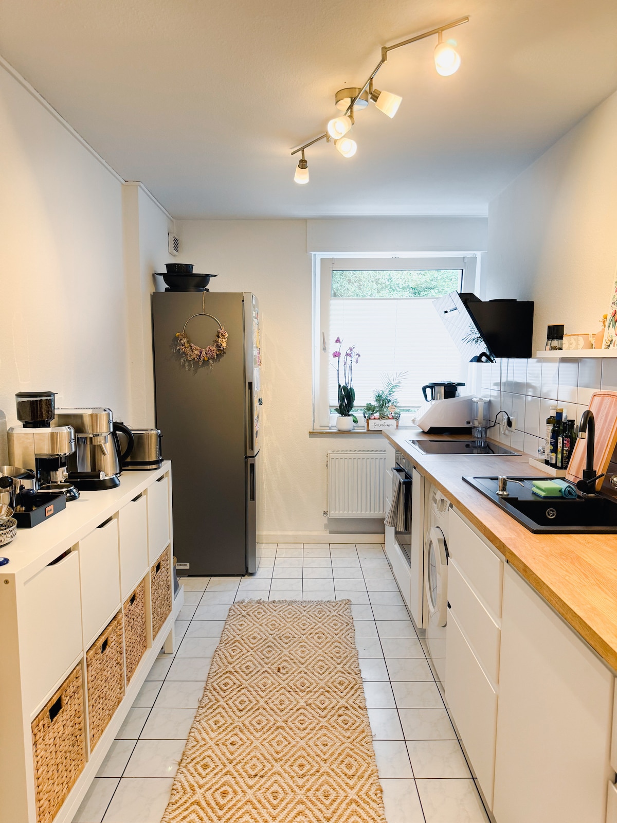 Ez az egy évvel ezelőtti modernizált lakás Ostheimben kiváló minőségű bútorokkal és teljesen felszerelt konyhával (indukciós tűzhely, sütő, mikrohullámú sütő, mosogatógép, vízforraló, edények), valamint mosógéppel nyűgöz le. Az internet, a tévé, a tágas erkély és a lift teszi teljessé az ajánlatot. A ház alatt található a Karadag, a Rewe szupermarket, két gyógyszertár, egy posta és egy játszótér a közelben. 9-es vonal a közvetlen közelben: 8 perc Deutz/Messe, 11 perc Heumarkt