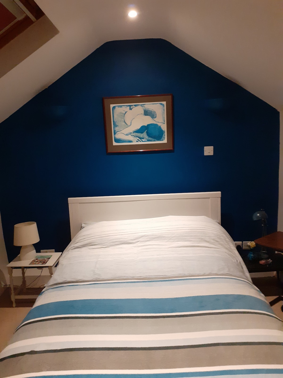 Csendes, tágas kétágyas szoba tetőtérben, saját zuhanyzóval és vécével. Modern velux ablakok rolókkal, rengeteg tárolóhely. Hozzáférés evezős lépcsőházon keresztül (mozgáskorlátozottak számára nem megfelelő). A ház egy privát úton található a falu közepén, nagyon közel minden kényelmi szolgáltatáshoz, beleértve az üzleteket, kávézókat, kocsmákat/éttermeket, a Temze-folyót, a Thames Pathot és a vasútállomást. Oxford, Henley, Reading, London, National Trust földje és ingatlanjai közelében! Megjegyzés: Semmilyen háziállatot nem fogadok el!