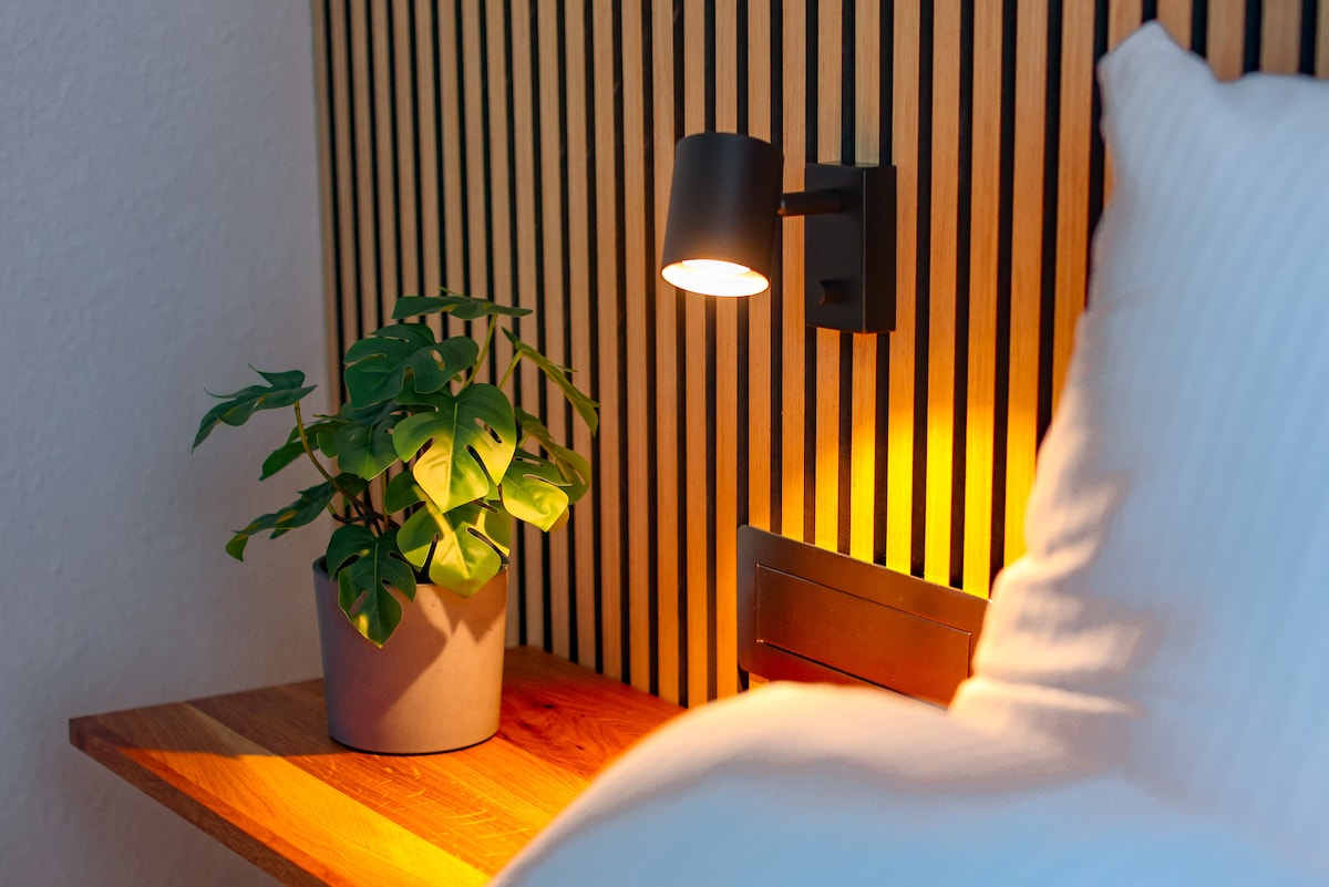 Új megnyitó! A Bochum szívében található, 1906-ban épült történelmi városi villa ötvözi a múlt emlékeit a mai luxussal. A következőkre számíthatsz: • Privát Klafs szauna • Esőztető zuhany hideg vízzel • King méretű kétszemélyes ágy • Smart TV közvetlenül az ágyban • Teljesen felszerelt konyha Nespresso kávéfőzővel • Étkezési és munkaterület • Panorámaablakok, amelyek egy gombnyomásra matt üveggé válnak, és elektromos fényerőszabályzóval rendelkeznek • Kulcs nélküli érkezés • Fűtött, klímabarát