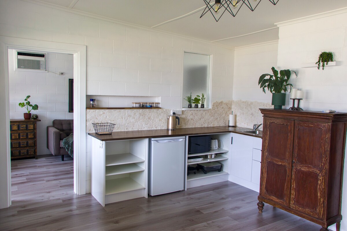 A családod mindenhez közel lesz, amikor megszállsz az Emerald Riverside Retreatben, mivel Berri a Riverland szíve. Hangulatos, újonnan felújított bungalónk rövid, 200 méteres sétára található a folyóparttól, a Berri Hoteltől és a városközponttól. Egy rövid autóút a Marina, a Kataraptko Nemzeti Park és a környező városok, Loxton, Renmark és Barmera 15 percen belül. Pihenj a kandalló előtt télen, csodáld meg a veranda naplementéjét, és élvezd a gyönyörű folyóparti éjszakákat grillezéssel és tűzzel a szabadban.