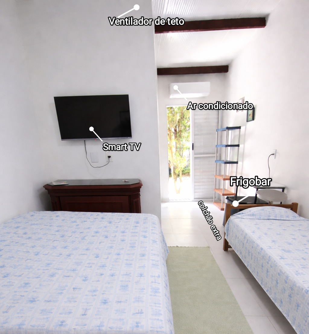 900 méterre a SESC strandtól, egy csendes környéken Helyünk azoknak szól, akik pihenésre vágynak, és/vagy élvezik a forró napokat a medencében Anélkül, hogy eltávolodnánk a városközponttól és főbb nevezetességeitől, számos ösvénytől kezdve a vízesésekig, folyókig és rengeteg strandig Szintén közel van egy környezetvédelmi rezervátumhoz, amely gyakran látogatja a madarakat a környéken • Független és saját bejárat, a helyet nem kell megosztani más vendégekkel