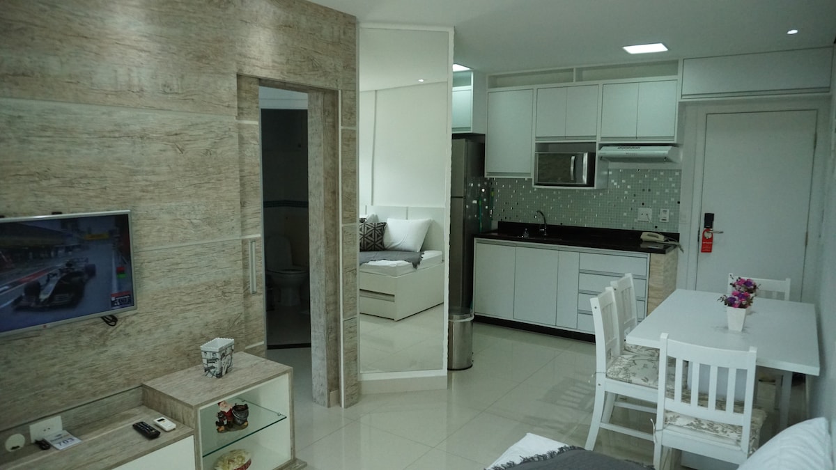 Apto. todo reformado com moveis planejados, cama Box de mola. Ar condicionado Split nos quartos e na sala . Mobília Nova.Varanda de frente para a rua .Rede de proteção nas duas sacadas Utensílios domésticos Liquidificador,sanduicheira,cafeteira elétrica ,Airfray . Máquina de gelo no prédio . Sala de jogos , sauna , churrasqueira. Lavadora de Roupa. Fica há 150 metros da praia . Serviço de praia com Guarda Sol e cadeiras.Uma vaga na garagem . TV Smart a cabo Net . Internet com 500 mega