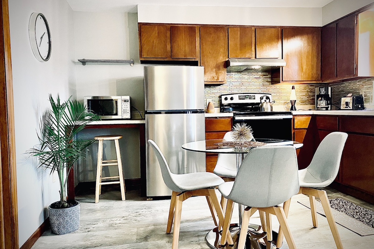 Szállj meg stílusosan a The Groovey Getaway negyedben, Calumet történelmi belvárosában, a Keweenaw szívében, a Michigan Techtől mindössze rövid távolságra. A két lakosztály egyike, amely csak a vendégek számára van kialakítva. A belvárosi negyed szívében, a Supernova jóga, a galéria és az ajándékok felett található két hálószobás lakosztály teljes konyhával hat vendég elszállásolására alkalmas. A frissen felújított, eklektikus, századközepi modern lakosztály ötvözi a stílust és a funkciót, valamint a kényelmet és a tisztaságot a szórakozás és az élvezet érdekében.