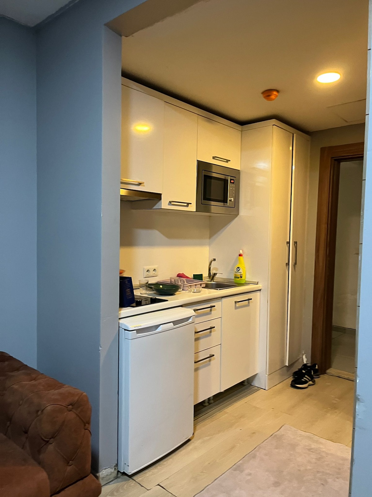 Cozy bright studio with bed, sofa, kitchenette