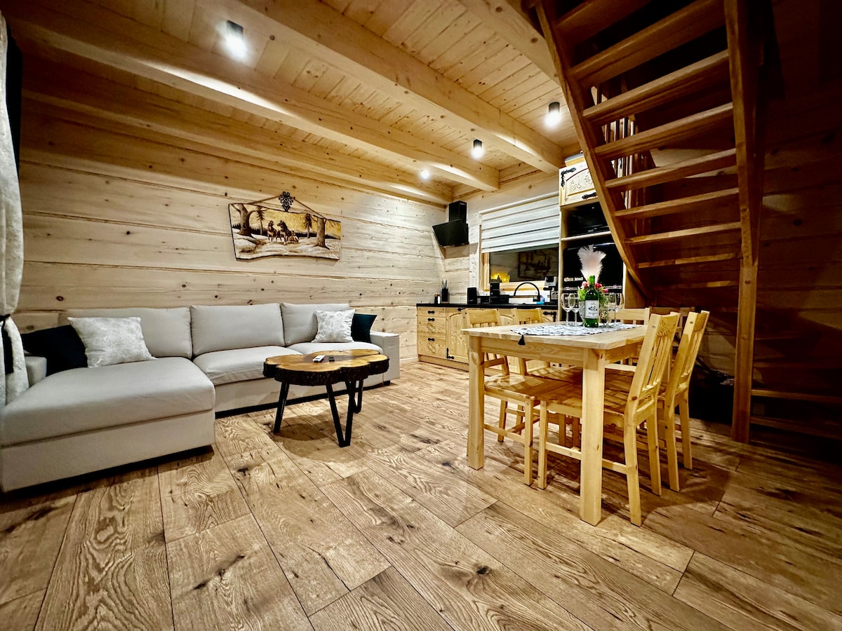 Meghívunk egy több száz éves fából épült ökológiai házba, amely Dursztynban, a Spisz szívében található. Ez egy exkluzív otthon – legelők és erdők között, távol a szomszédoktól és a zajtól. A természetes anyagok, a régi fa és a nagy üvegfelületek egyedi, természetközeli hangulatot teremtenek. Kint van egy privát pezsgőfürdő fűtött vízzel – tökéletes a szabad ég alatt való pihenéshez az év bármely szakában. Autentikus faház lélekkel – csend, magánélet és igazi pihenés.